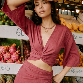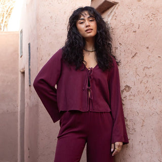 TILTIL Luna Langarmshirt mit drapiertem Rollkragen, Bordeaux