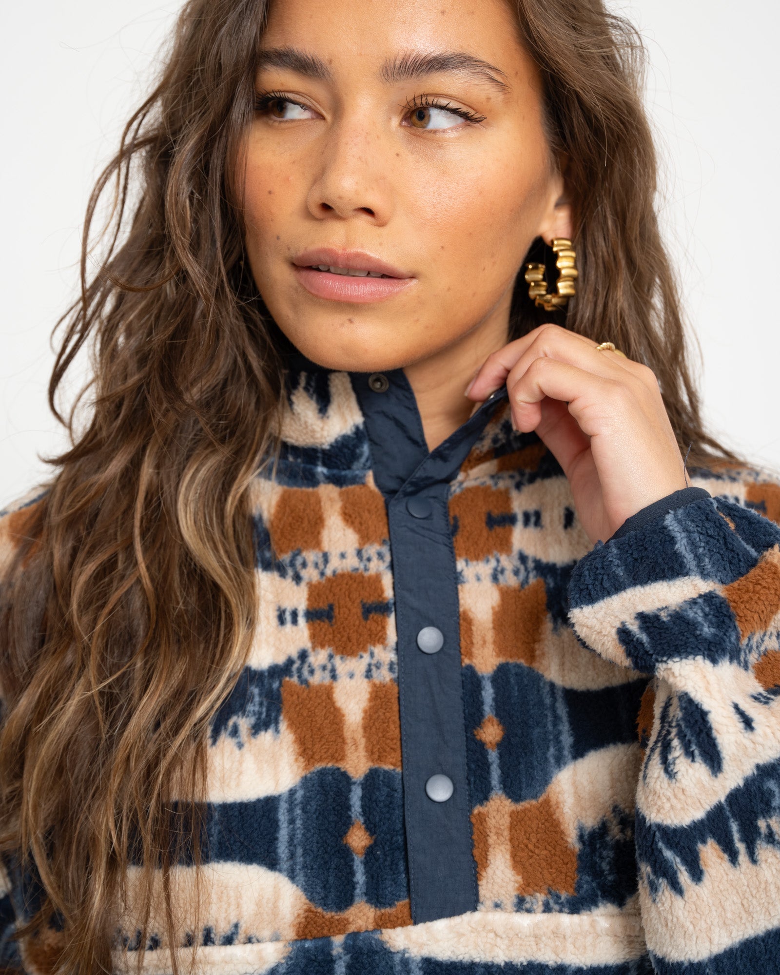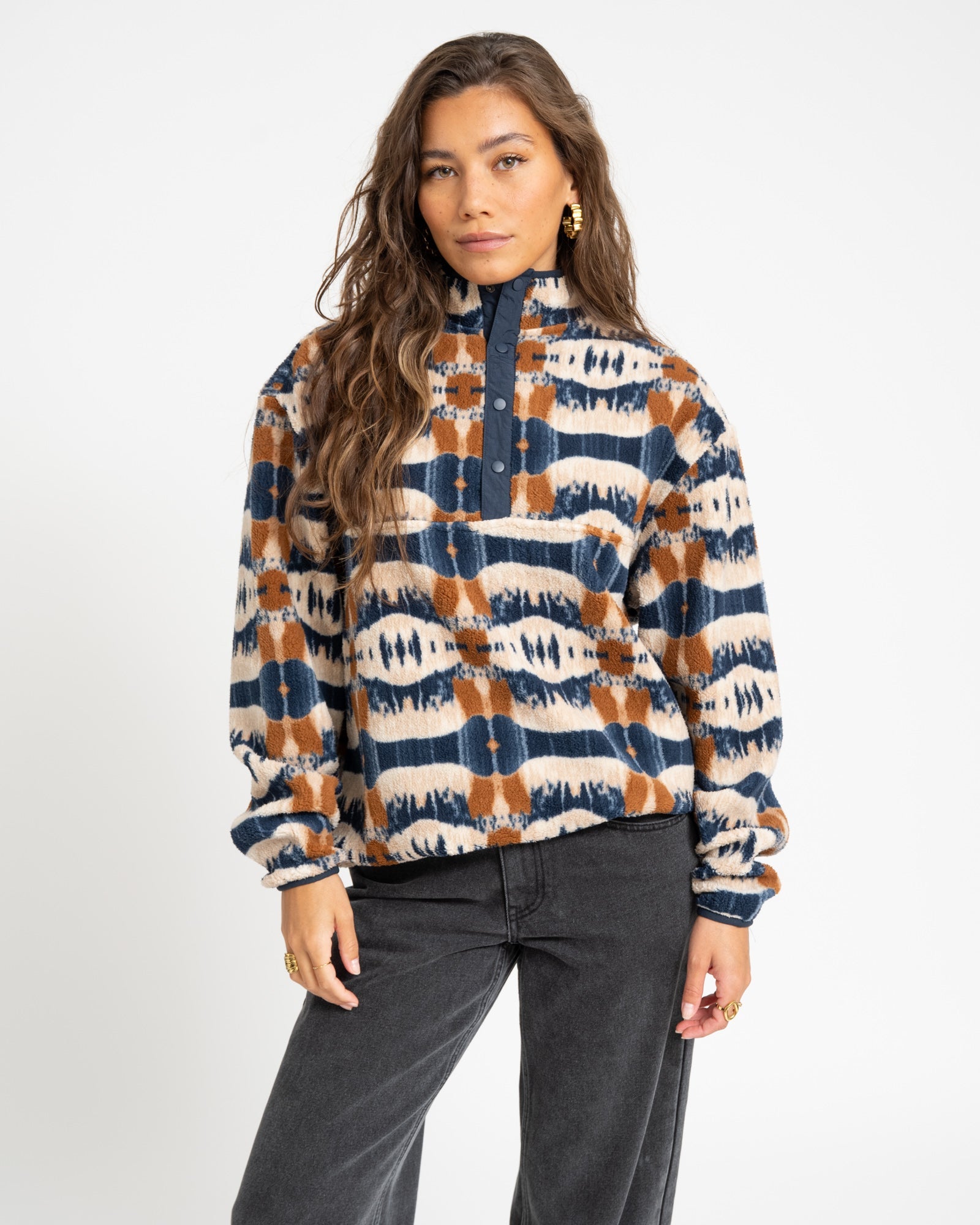 | Details | Lockere Passform, Hoher Kragen mit Knopfverschluss, Fleece-Stoff |