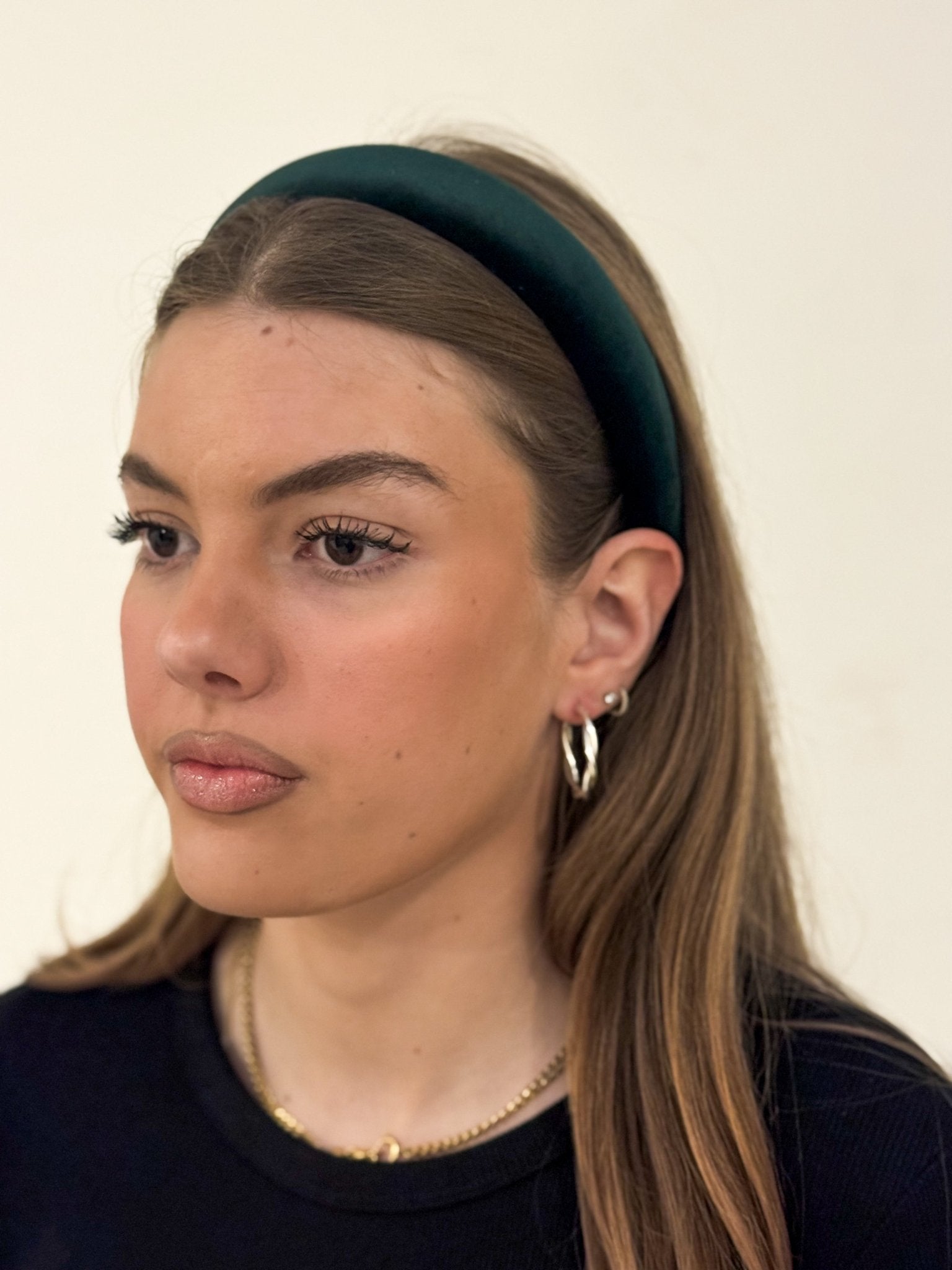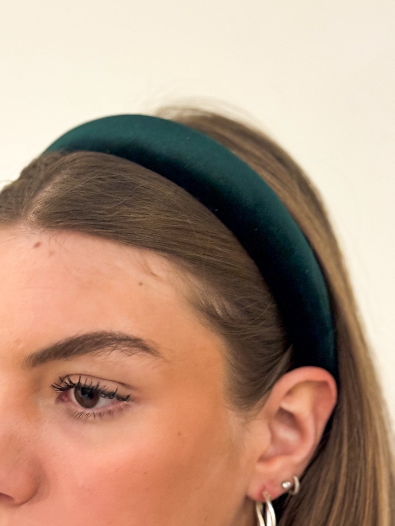 Ein dünnes, dunkelgrünes Samthaarband. Perfekt, um jedes Party-Outfit aufzupeppen!