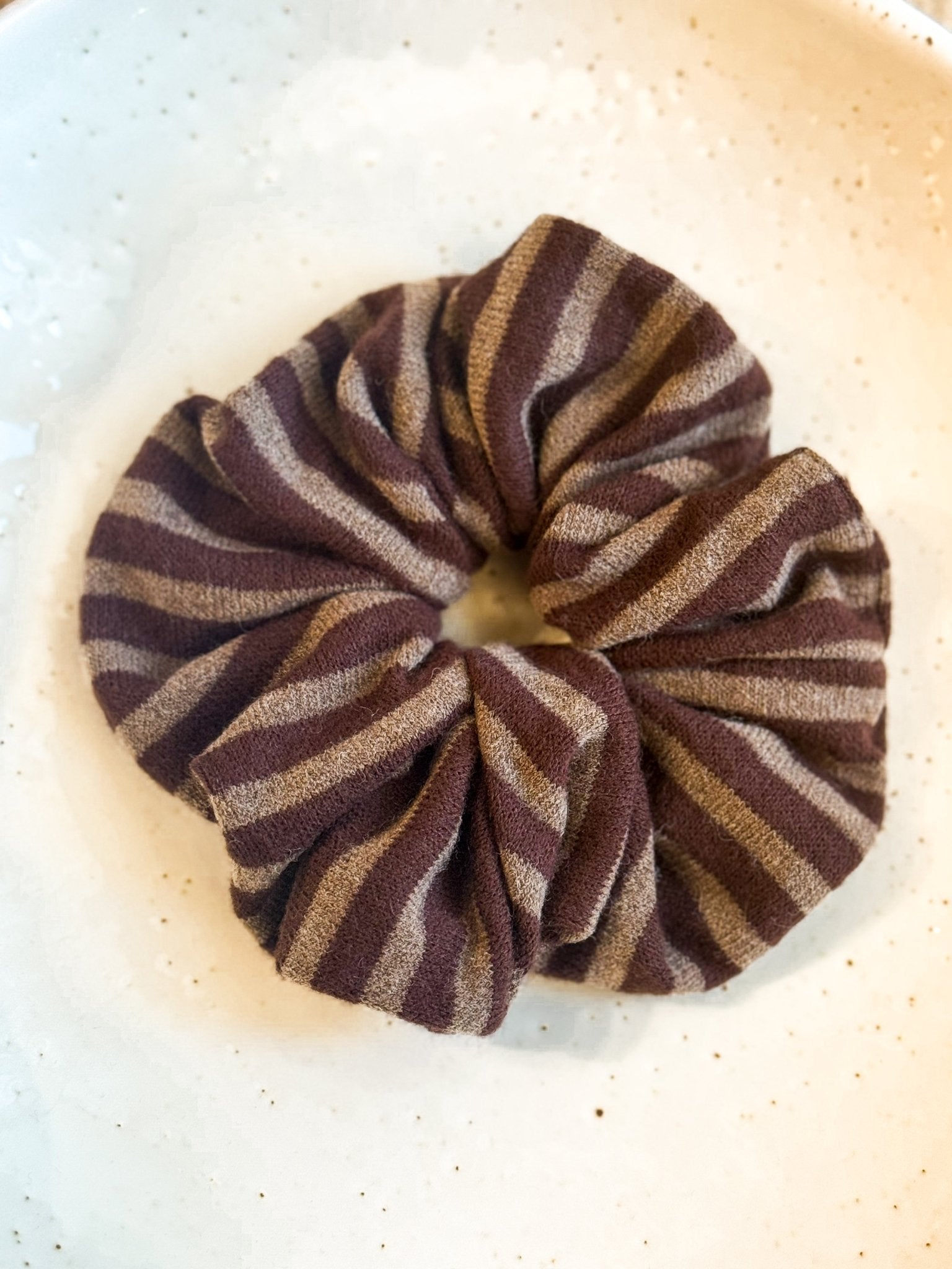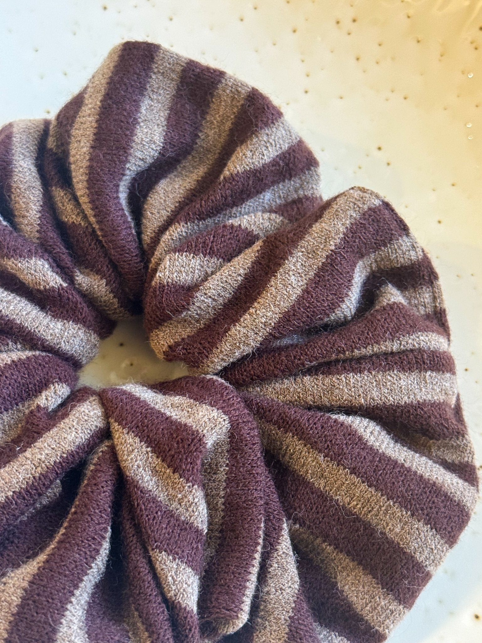 Ein gestreiftes Strickhaargummi, perfekt für den Winter!