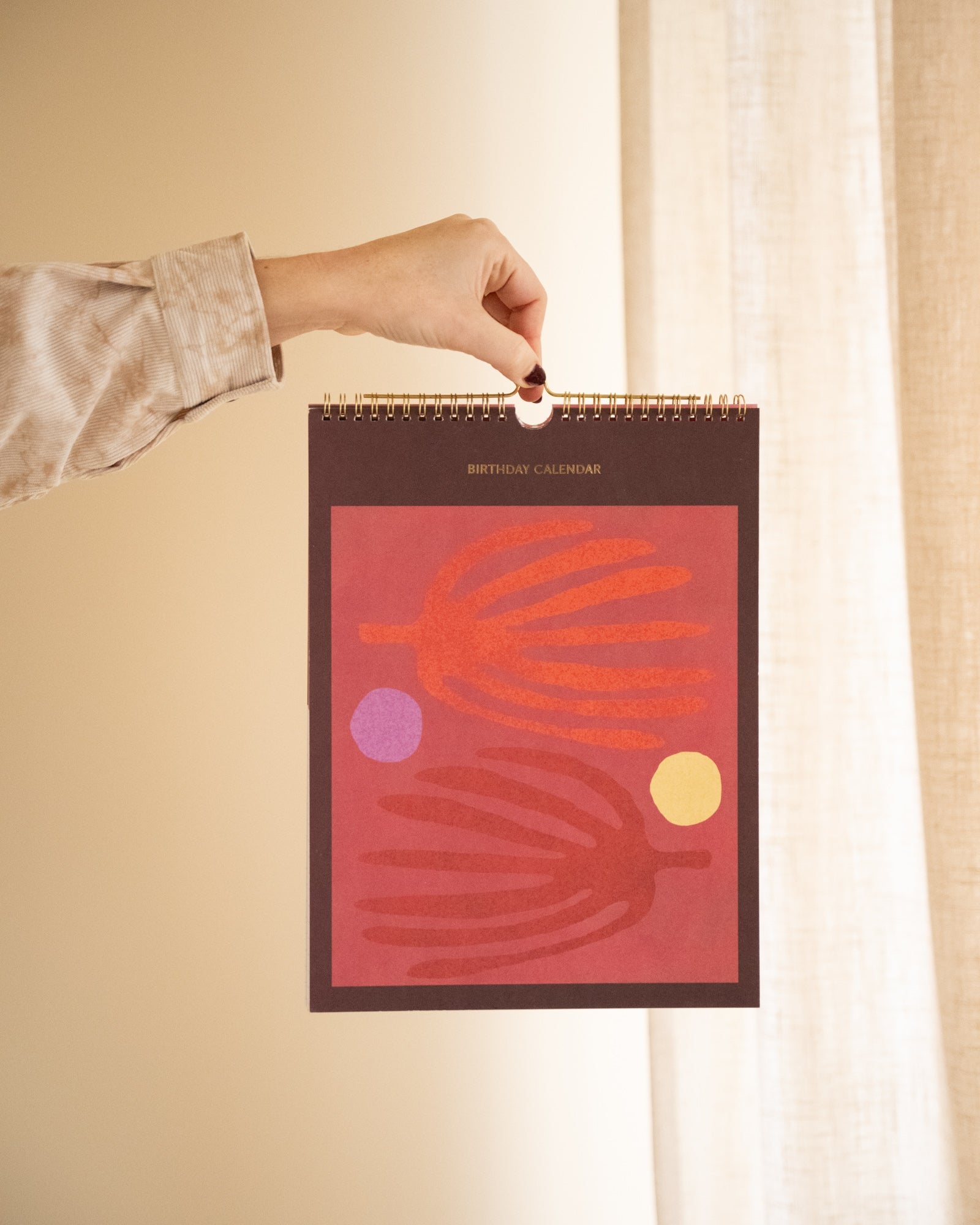 Vergessen Sie nie wieder die Geburtstage Ihrer Liebsten mit dem Geburtstagskalender Arty. Jeden Monat werden Sie von einer einzigartigen handgemalten Illustration überrascht, die zum Tagträumen einlädt. Dieser Kalender sieht nicht nur toll an der Wand aus, sondern bietet auch einen praktischen Überblick über alle wichtigen Geburtstage.