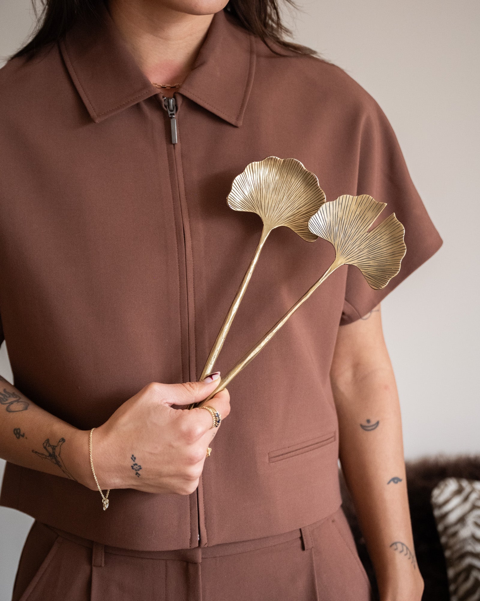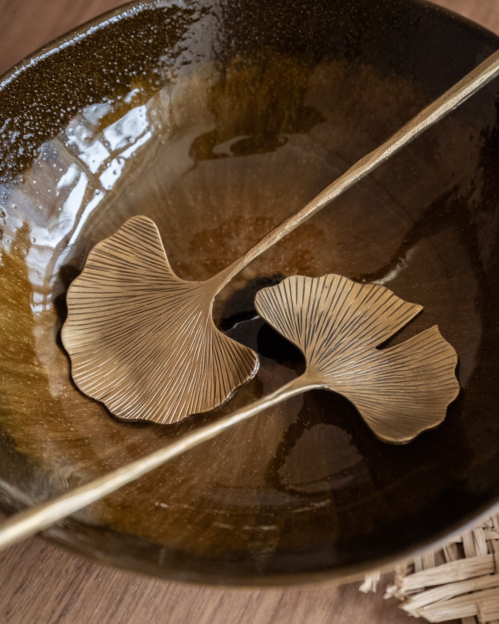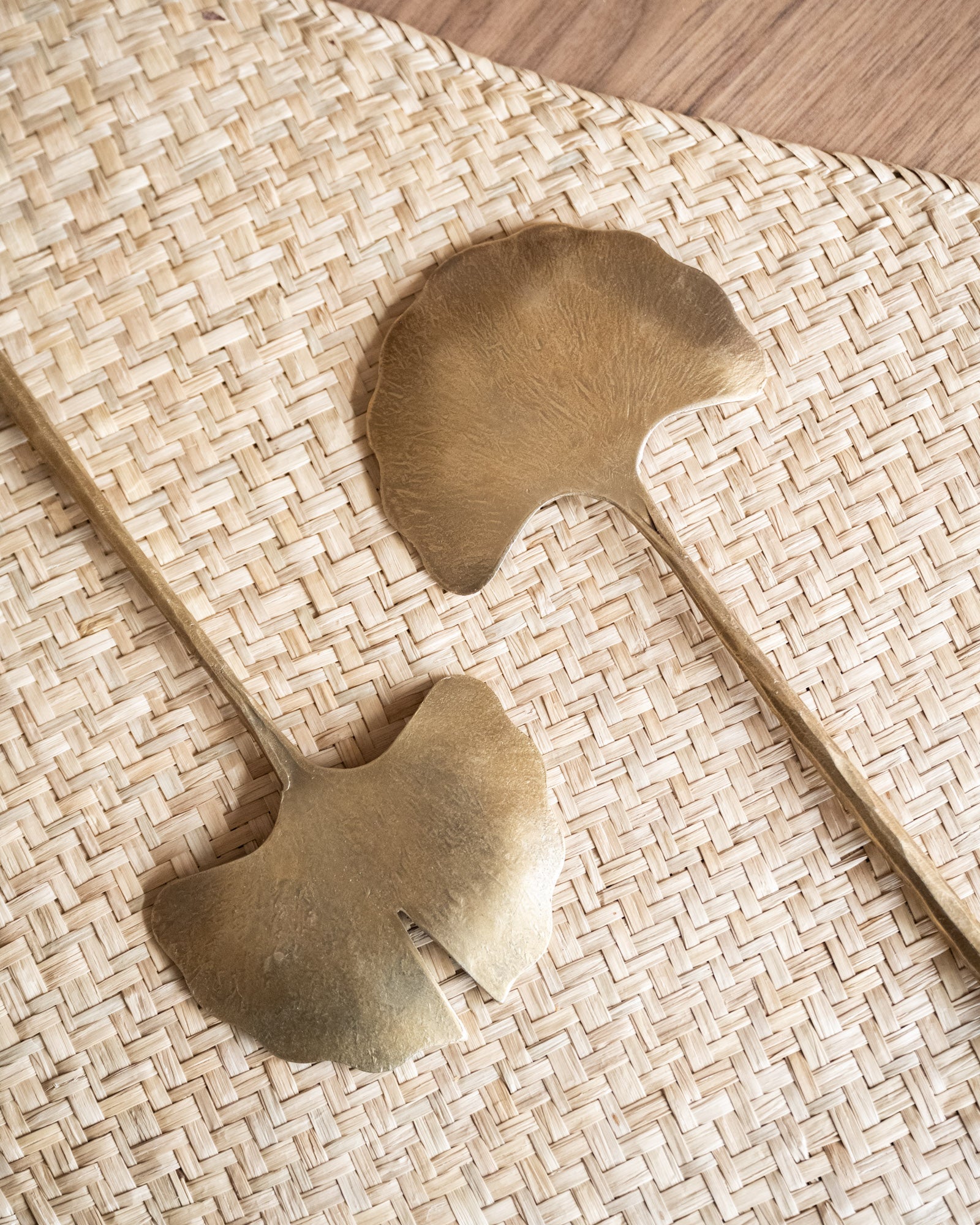 Das Bloomingville Lyas Salatbesteck besteht aus zwei eleganten Salatlöffeln mit vergoldeter Messingoberfläche. Das von Ginkgoblättern inspirierte Design verleiht jedem Tisch eine elegante und warme Note. Schön und praktisch für Salate, Hauptgerichte oder als dekoratives Element.