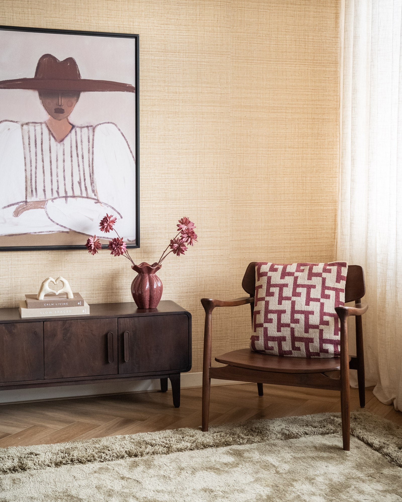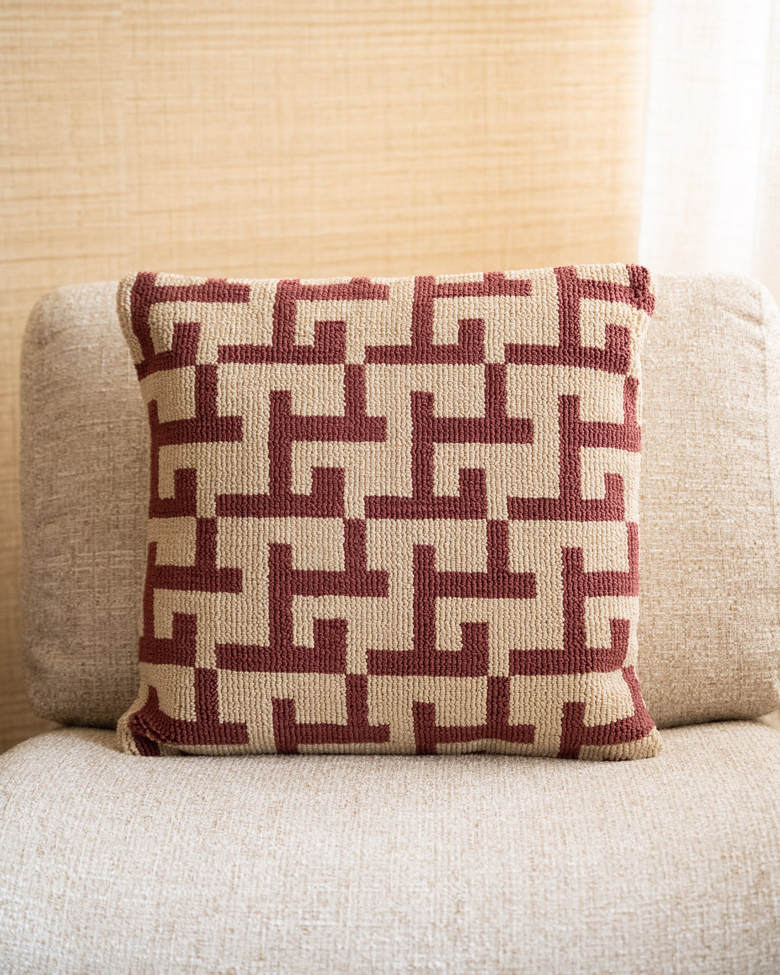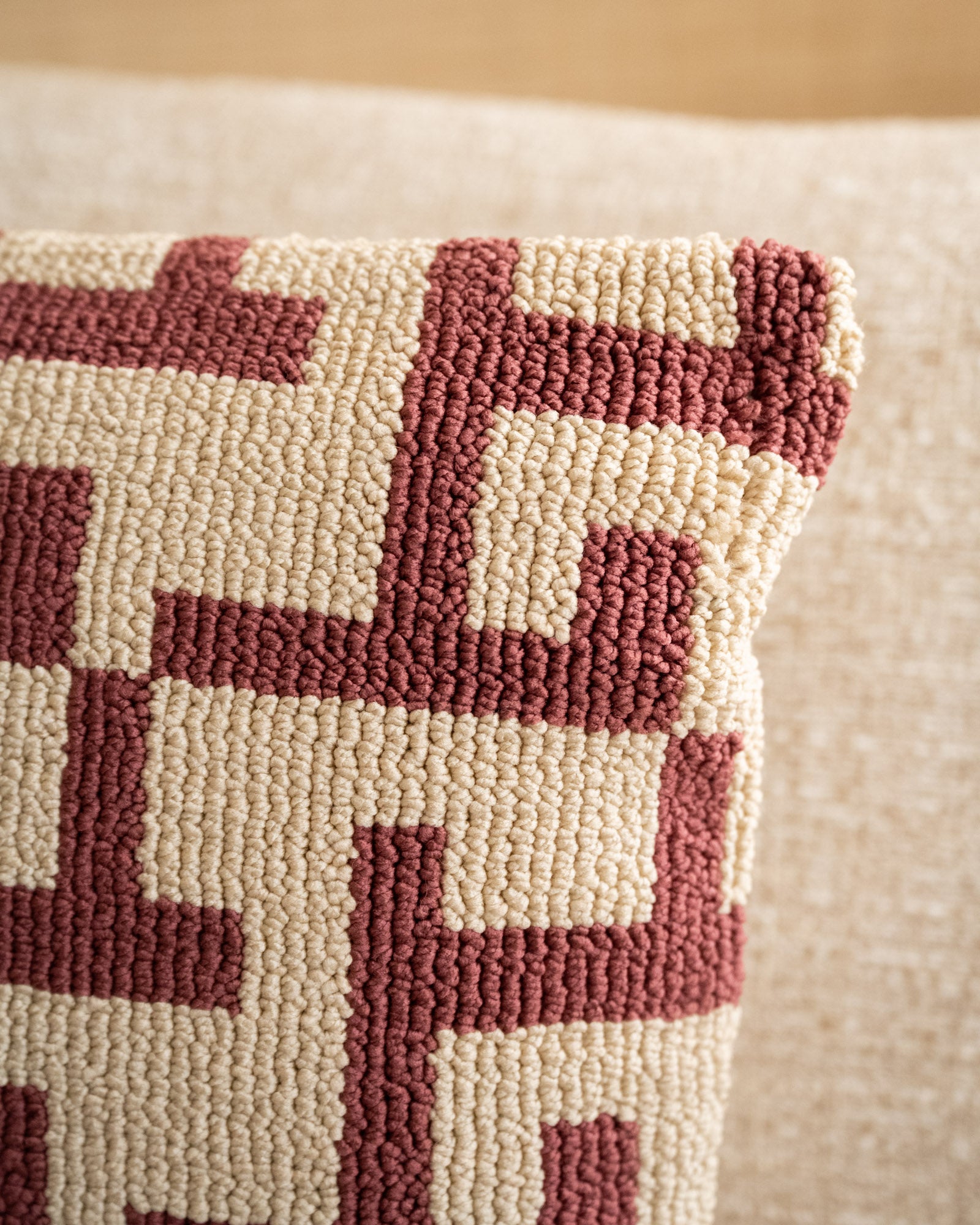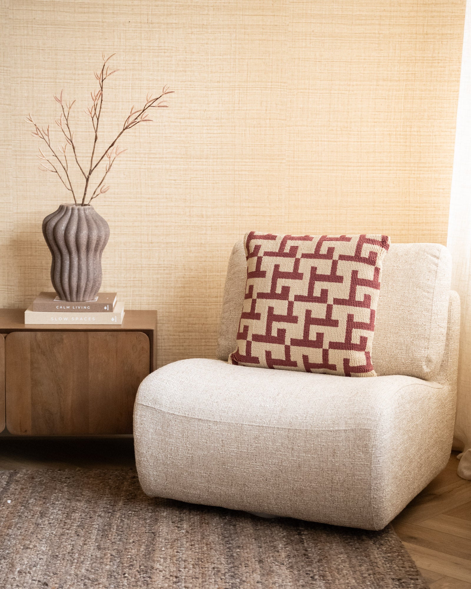 Das Kissen „Burgundy Geometric Weave“ ist ein echter Hingucker mit modernem Retro-Flair. Das grafische Muster in warmen Burgunder- und Cremetönen verleiht Ihrem Sofa, Sessel oder Bett sofort Charakter. Es vereint Stil und Komfort und sorgt für eine behagliche Atmosphäre in Ihrem Zuhause.