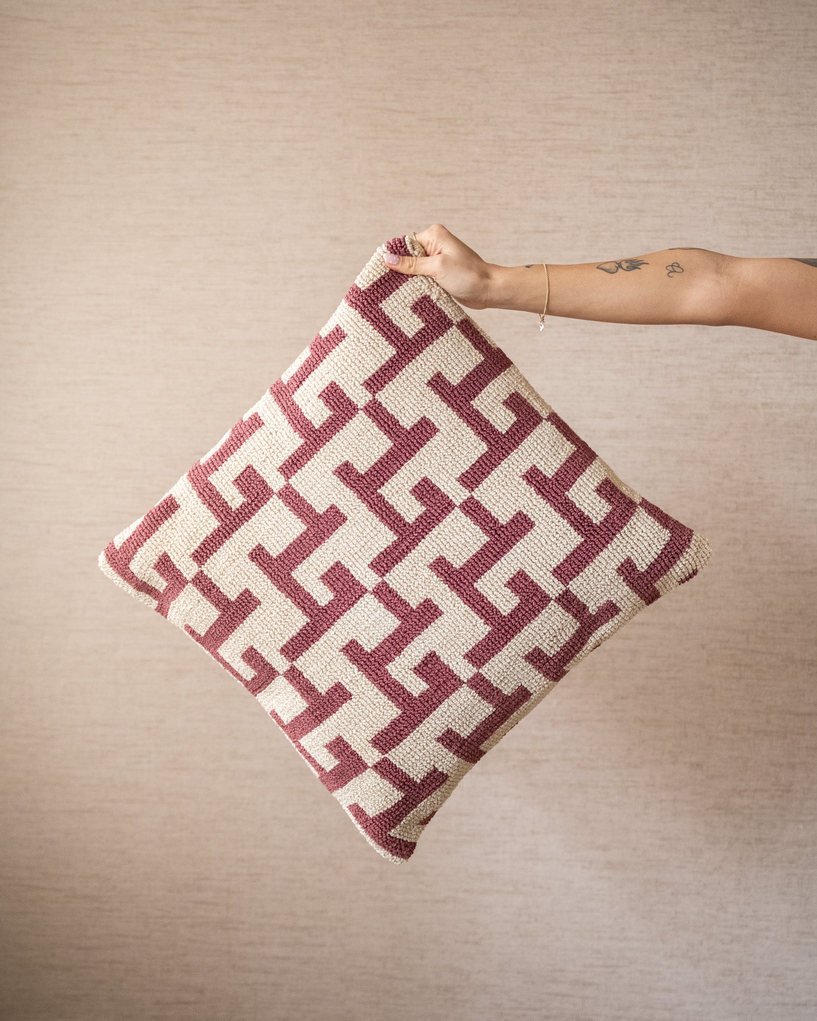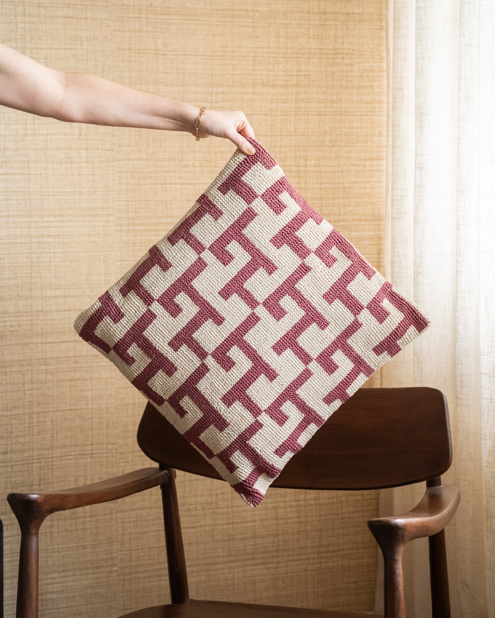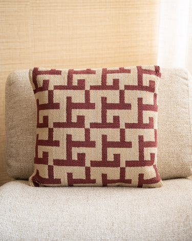 Kissen mit geometrischem Webmuster, Burgunderrot