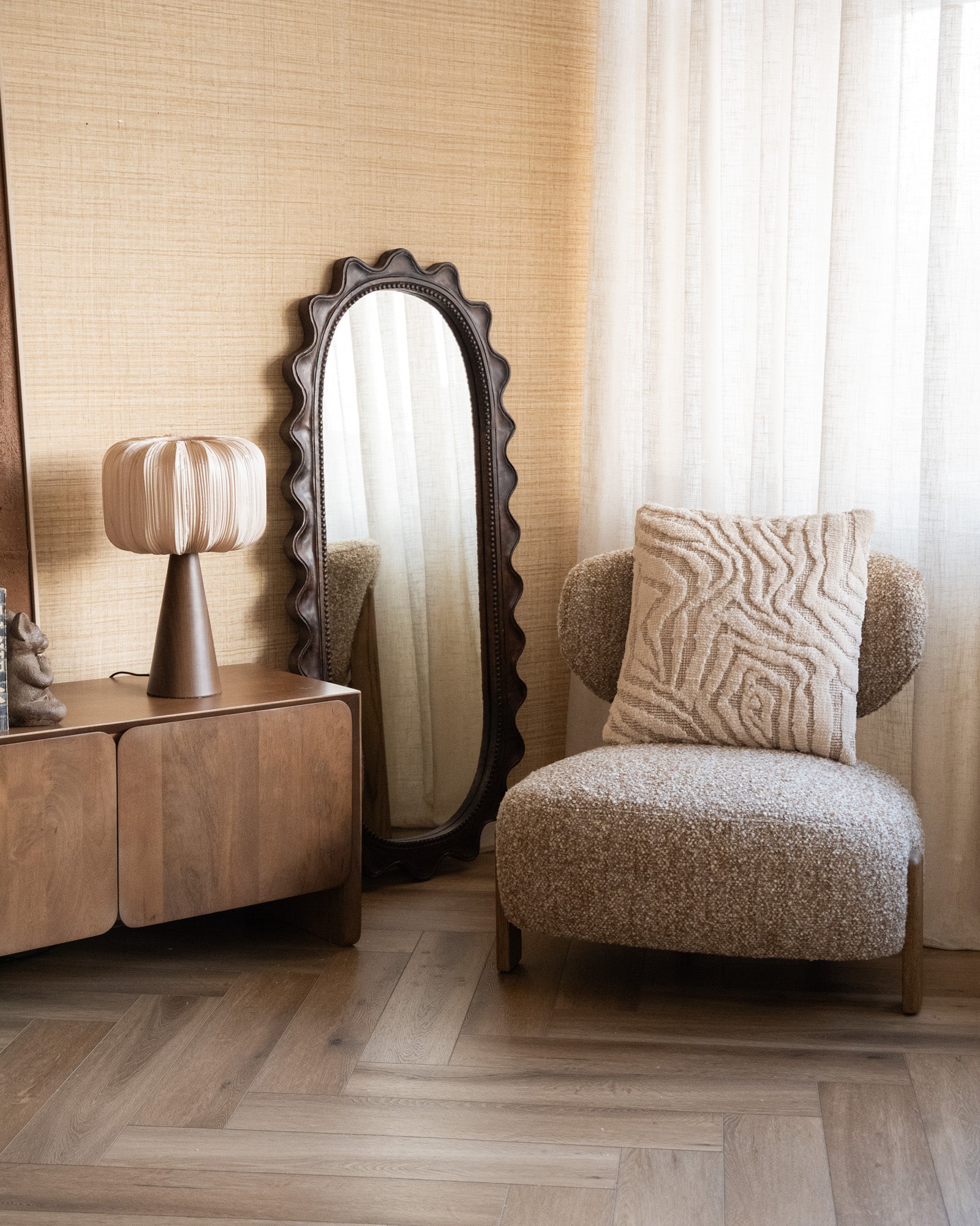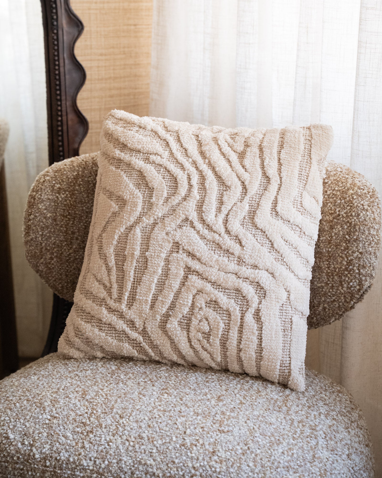 Weich, stilvoll und verspielt: Dieses Kissen mit dezentem Strukturmuster in Naturtönen verleiht Ihrem Zuhause sofort ein besonderes Ambiente. Es sieht wunderschön auf dem Sofa, im Sessel oder als dekoratives Element auf dem Bett aus. Kombinieren Sie es mit anderen Texturen und Farben für einen lässigen, warmen Look.