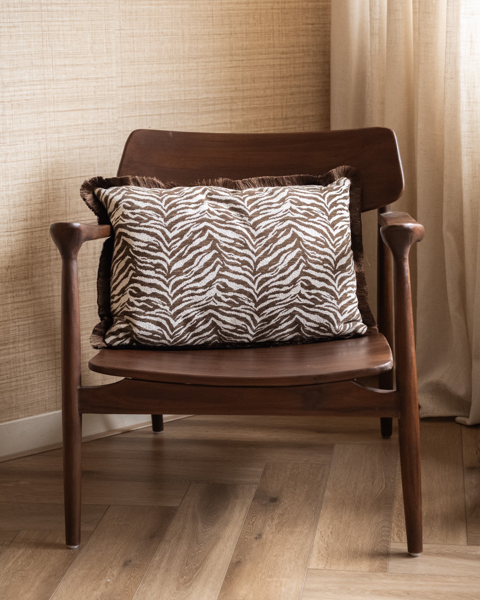 Bringen Sie Wärme und Charakter in Ihr Interieur mit dem Kissen Tigra Brown. Dieses stilvolle Kissen mit verspieltem Tigerprint in Braun- und Beigetönen verleiht Ihrem Sofa oder Sessel sofort einen gemütlichen, trendigen Look. Der weiche Stoff und die satten Farben machen es zur perfekten Ergänzung für ein warmes und modernes Interieur.