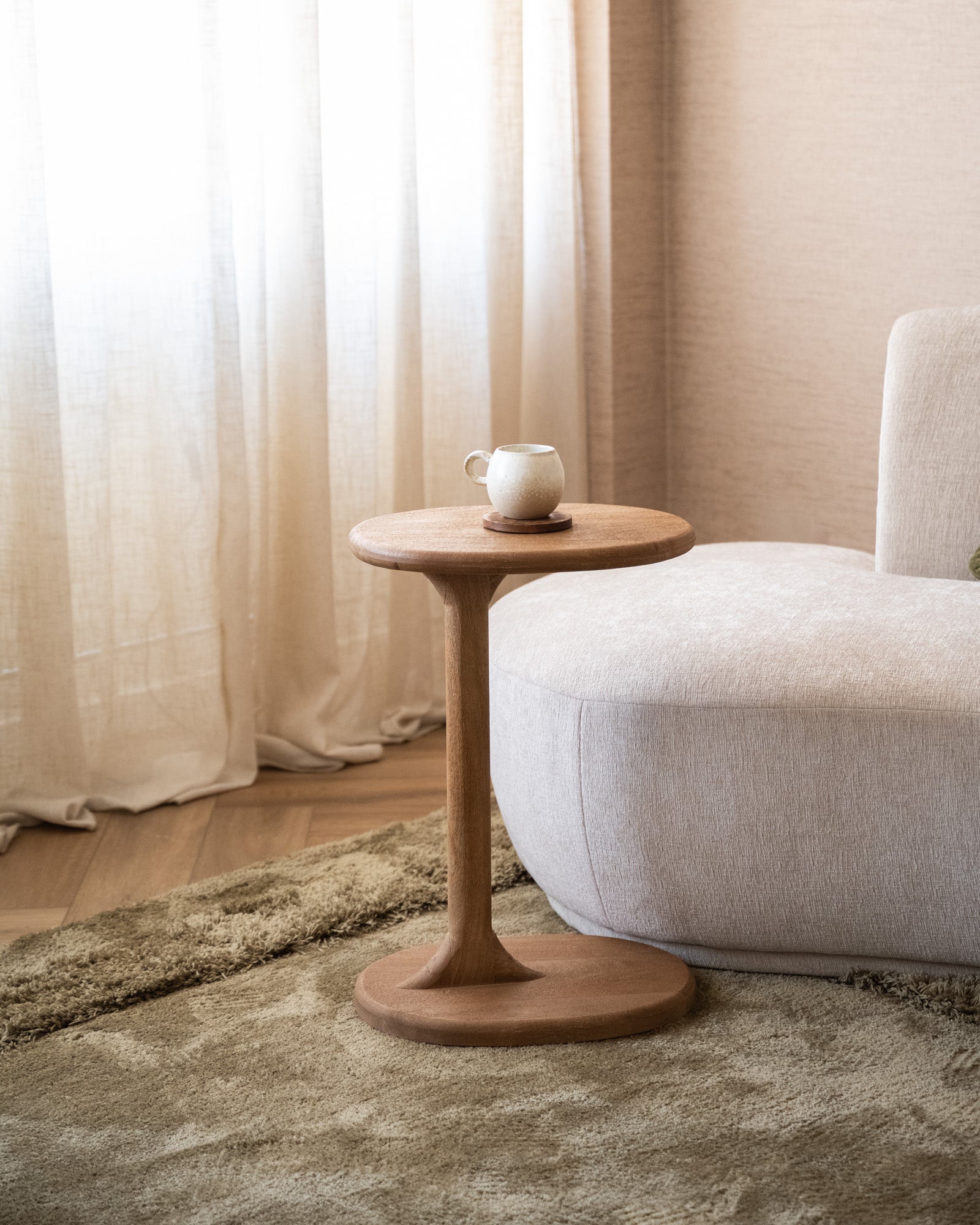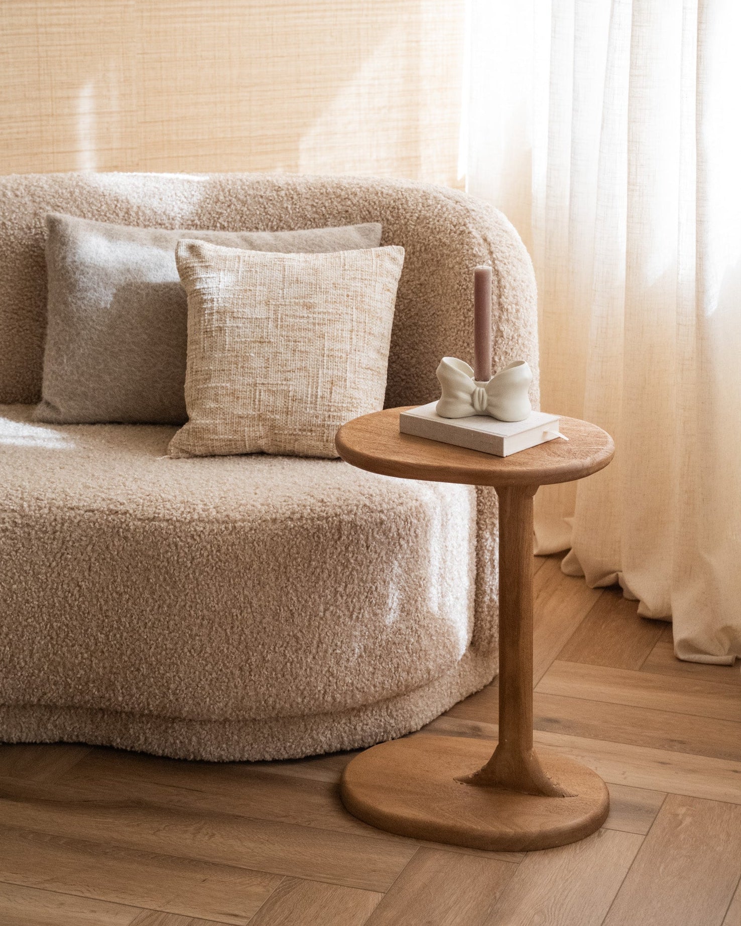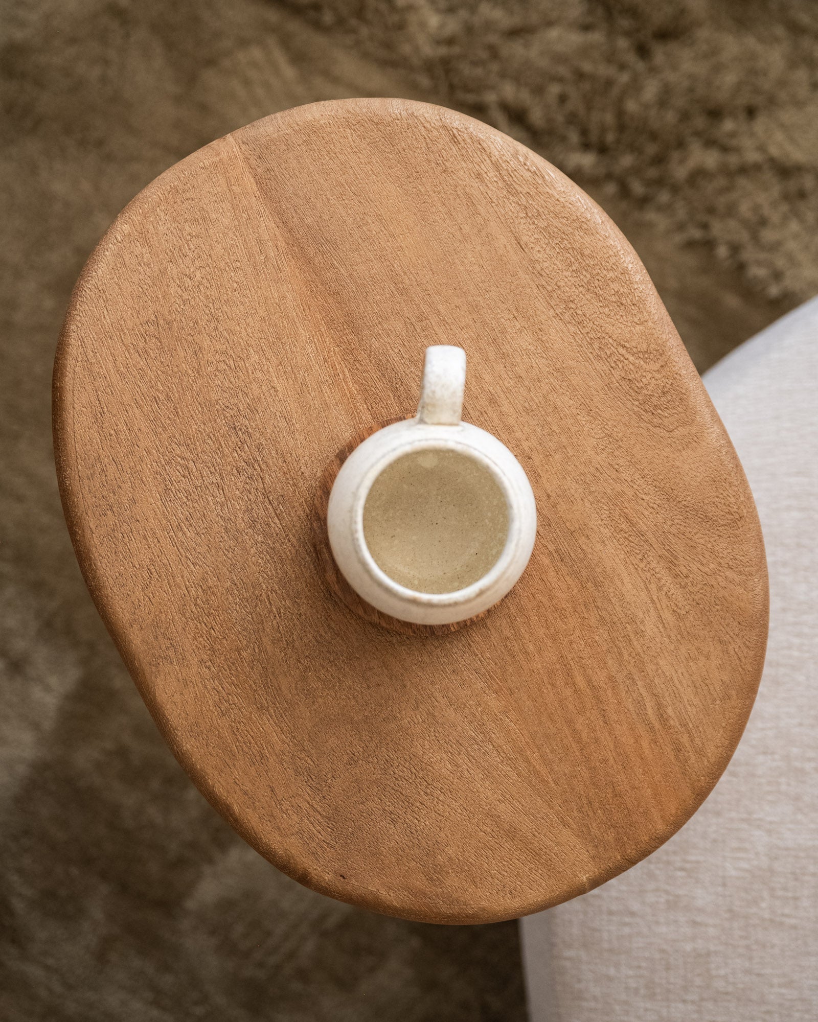 Der Beistelltisch Felix aus hellem Mangoholz eignet sich perfekt für die Platzierung neben dem Sofa. Dieser Tisch ist ideal zum Abstellen einer Tasse Tee und verleiht der Inneneinrichtung einen stilvollen Look.