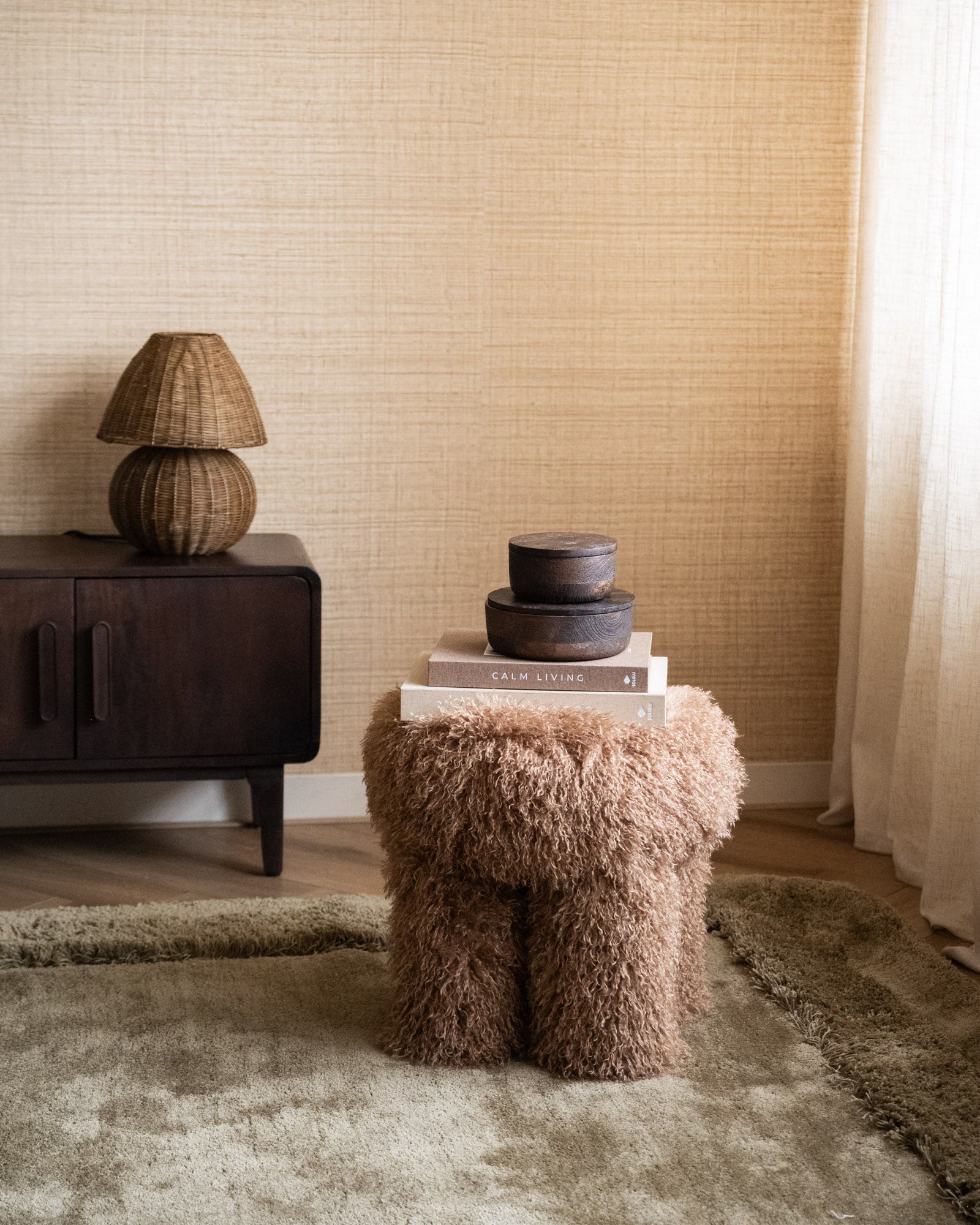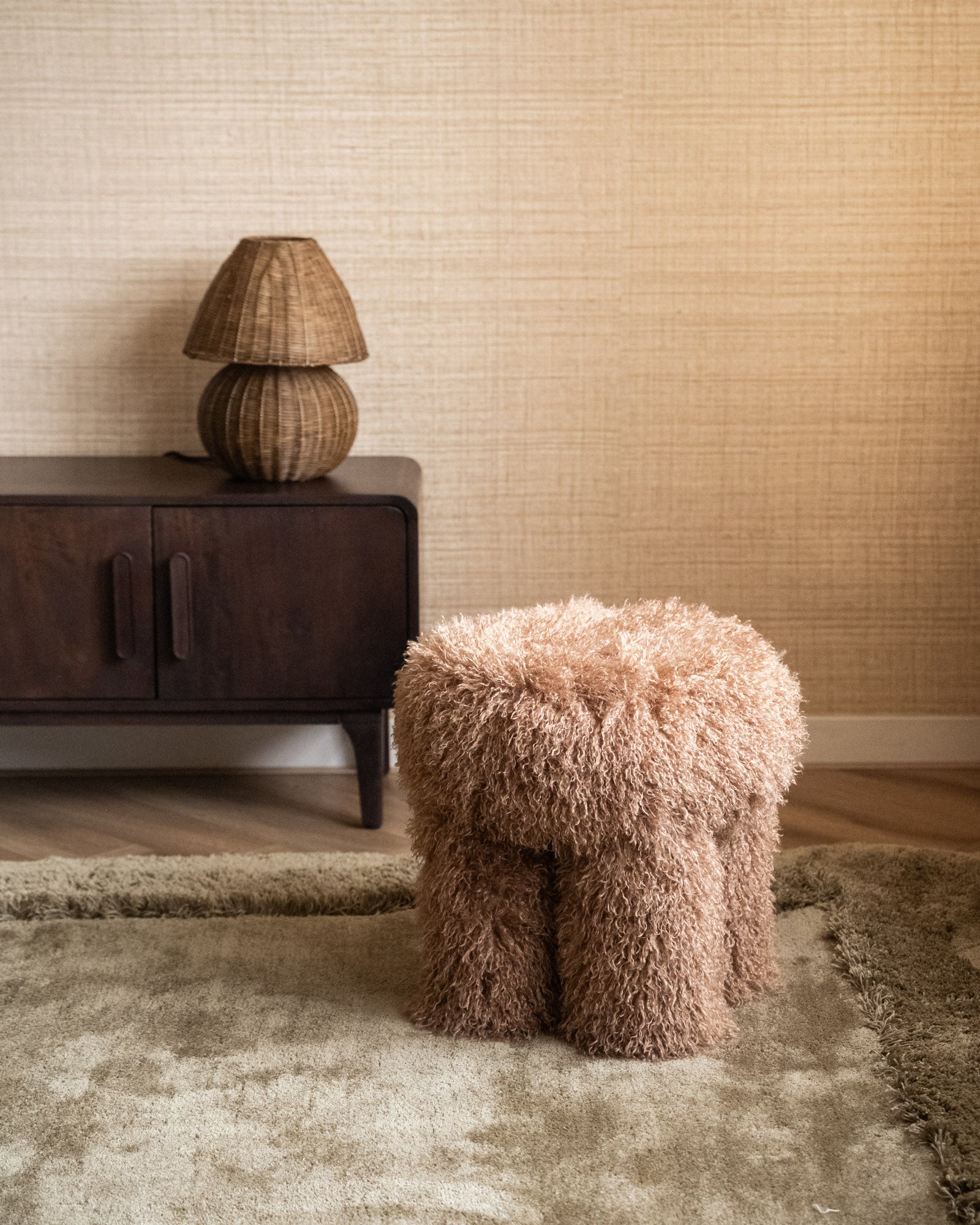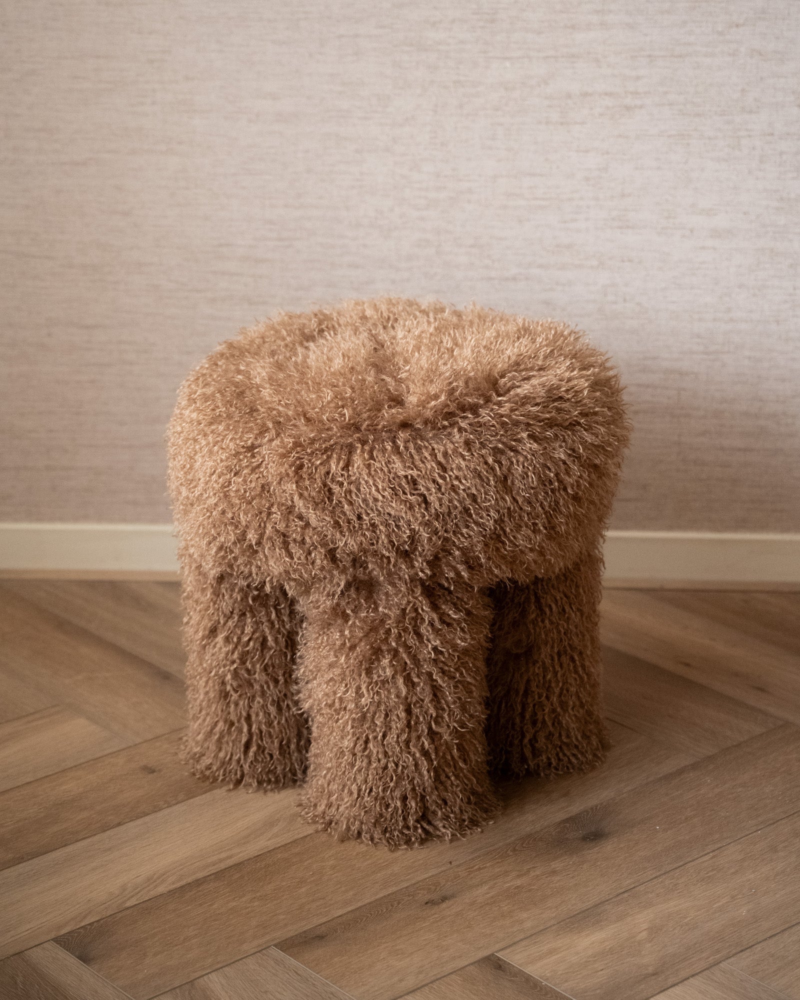 Dieser flauschige Hocker mit seinem wolligen Bezug und den abgerundeten Formen wirkt verspielt und kuschelig. Er ist unwiderstehlich weich und verleiht Ihrem Zuhause sofort eine gemütliche Atmosphäre. Perfekt als zusätzliche Sitzgelegenheit, Fußhocker oder einfach nur, weil er so niedlich ist.