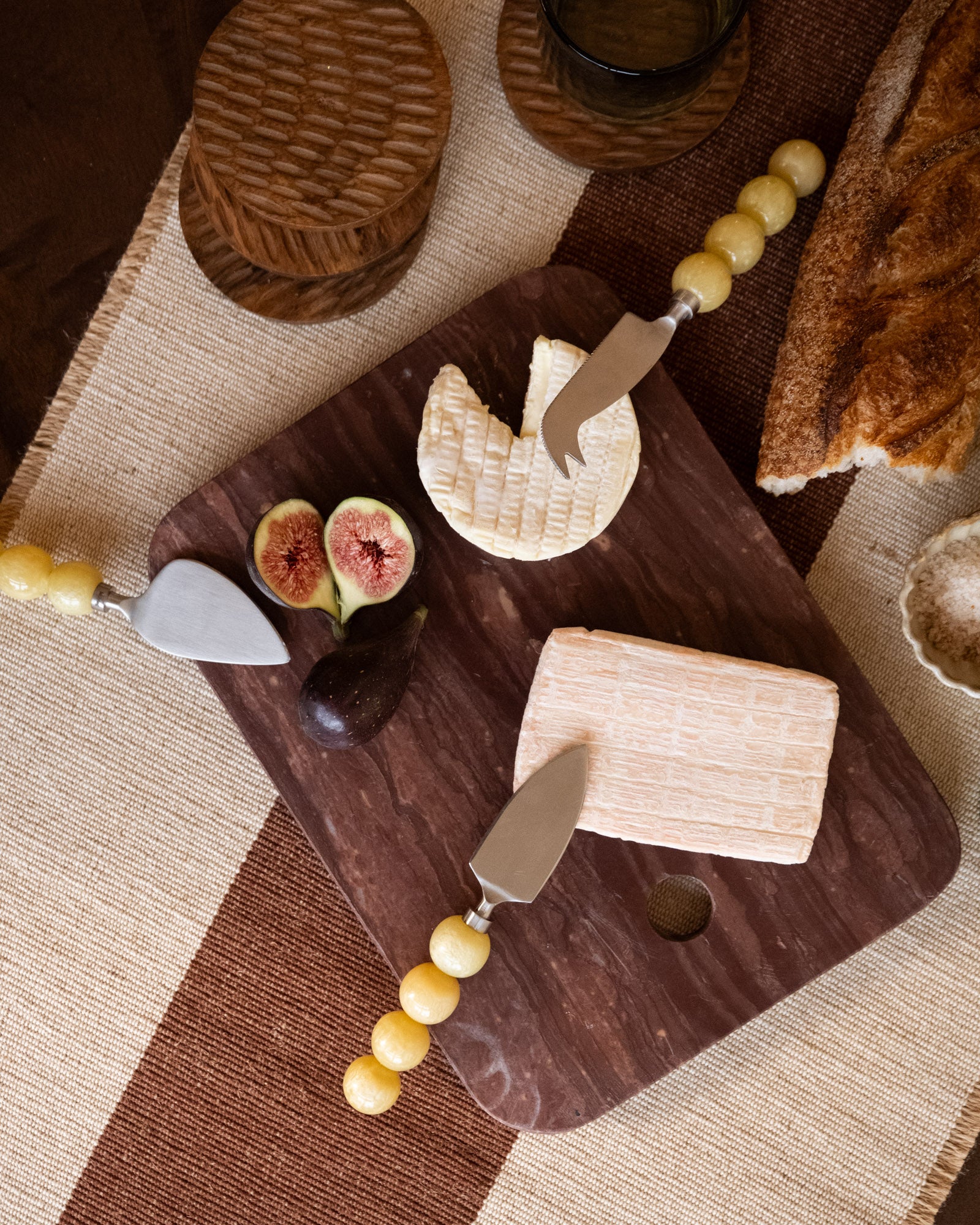 Verleihen Sie Ihrer Küche Stil und Eleganz mit diesem wunderschönen Schneidebrett aus braunem Marmor. Die natürliche Maserung und die warmen Farbtöne machen jedes Stück zu einem Unikat. Es eignet sich perfekt als luxuriöses Servierbrett für Käse oder Vorspeisen, ist aber auch robust genug für den täglichen Gebrauch. Dank der runden Aufhängeöse lässt es sich einfach aufhängen und ist somit sowohl praktisch als auch dekorativ. Ein echter Blickfang für jede Küche oder jeden Esstisch.