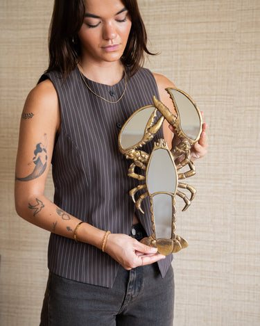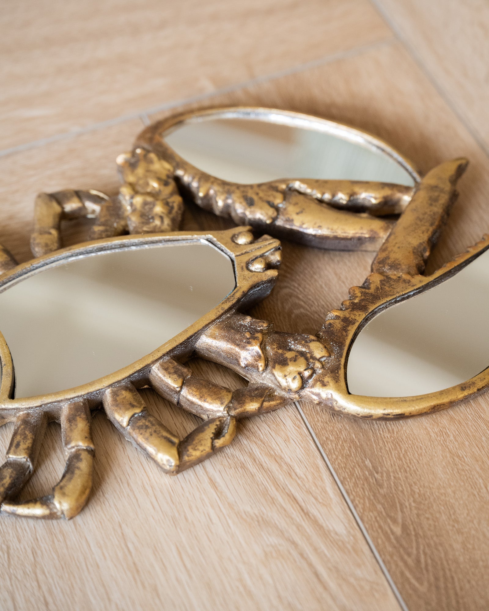 Begrüßen Sie Ihr neues Lieblingsstück: Dieser goldene Hummerspiegel ist alles andere als gewöhnlich. Mit seinen glänzenden Scheren und seinem Retro-Glamour-Look wertet er Ihre Wanddekoration auf. Perfekt für den Flur, das Badezimmer oder Ihre andere Wandkunst!