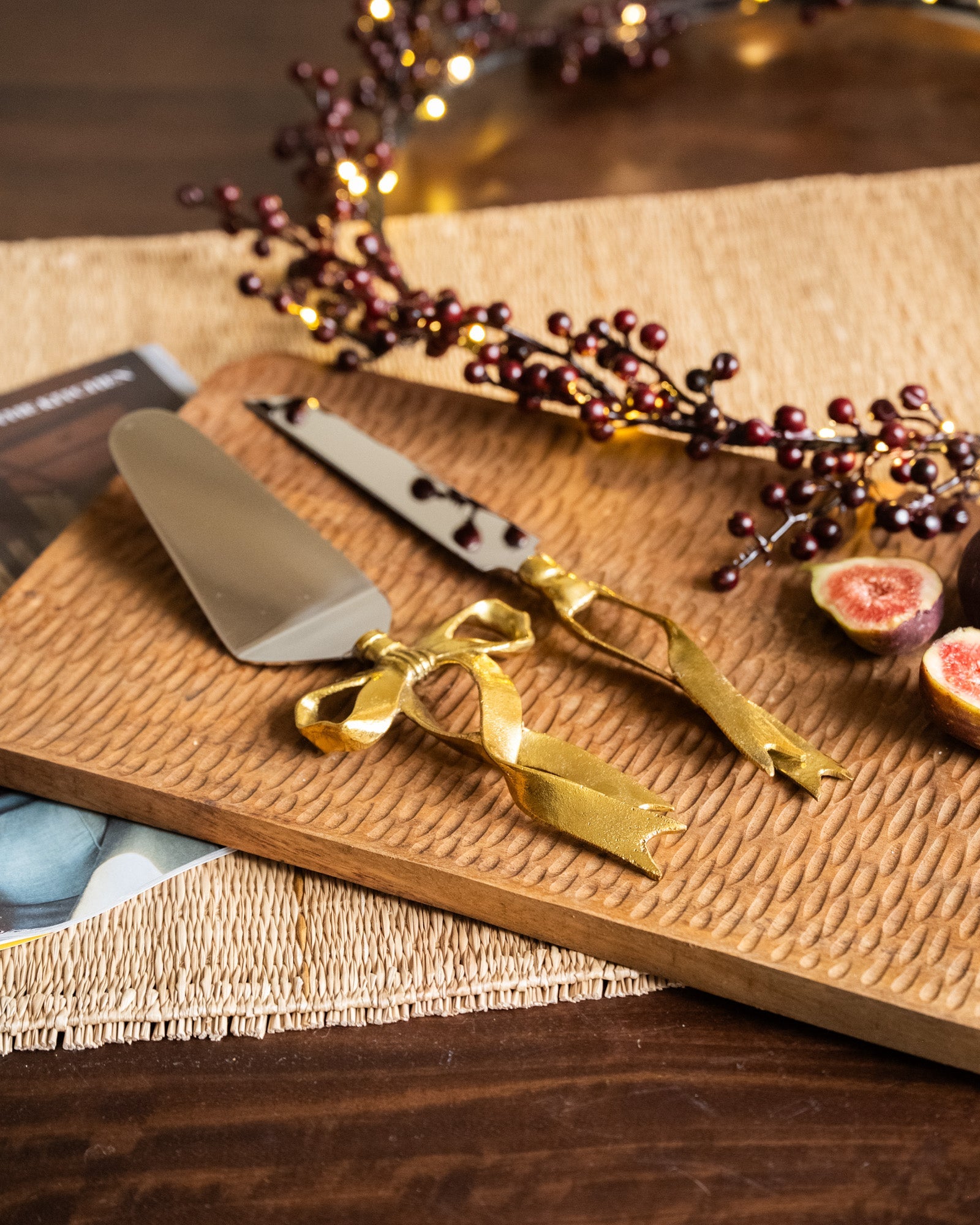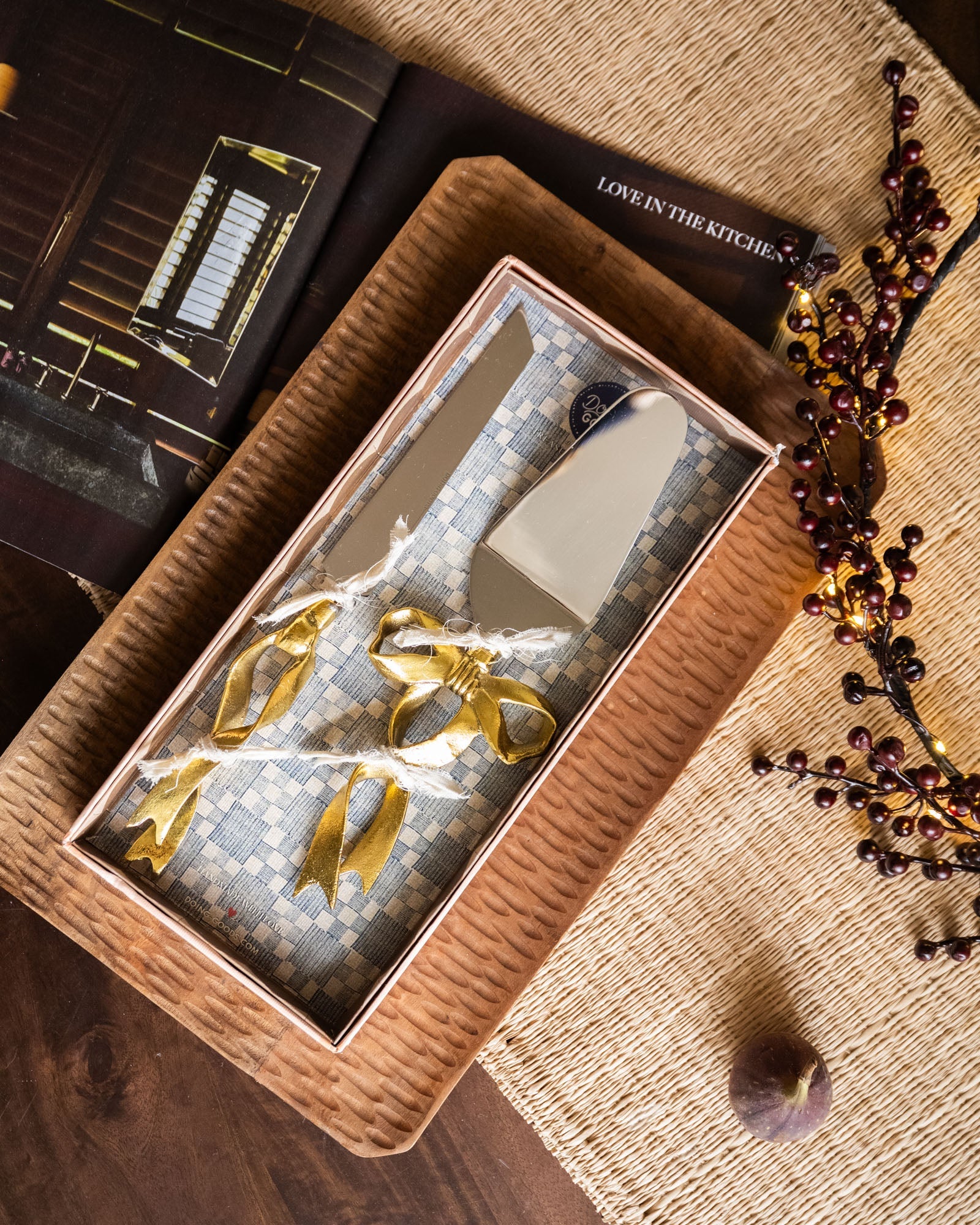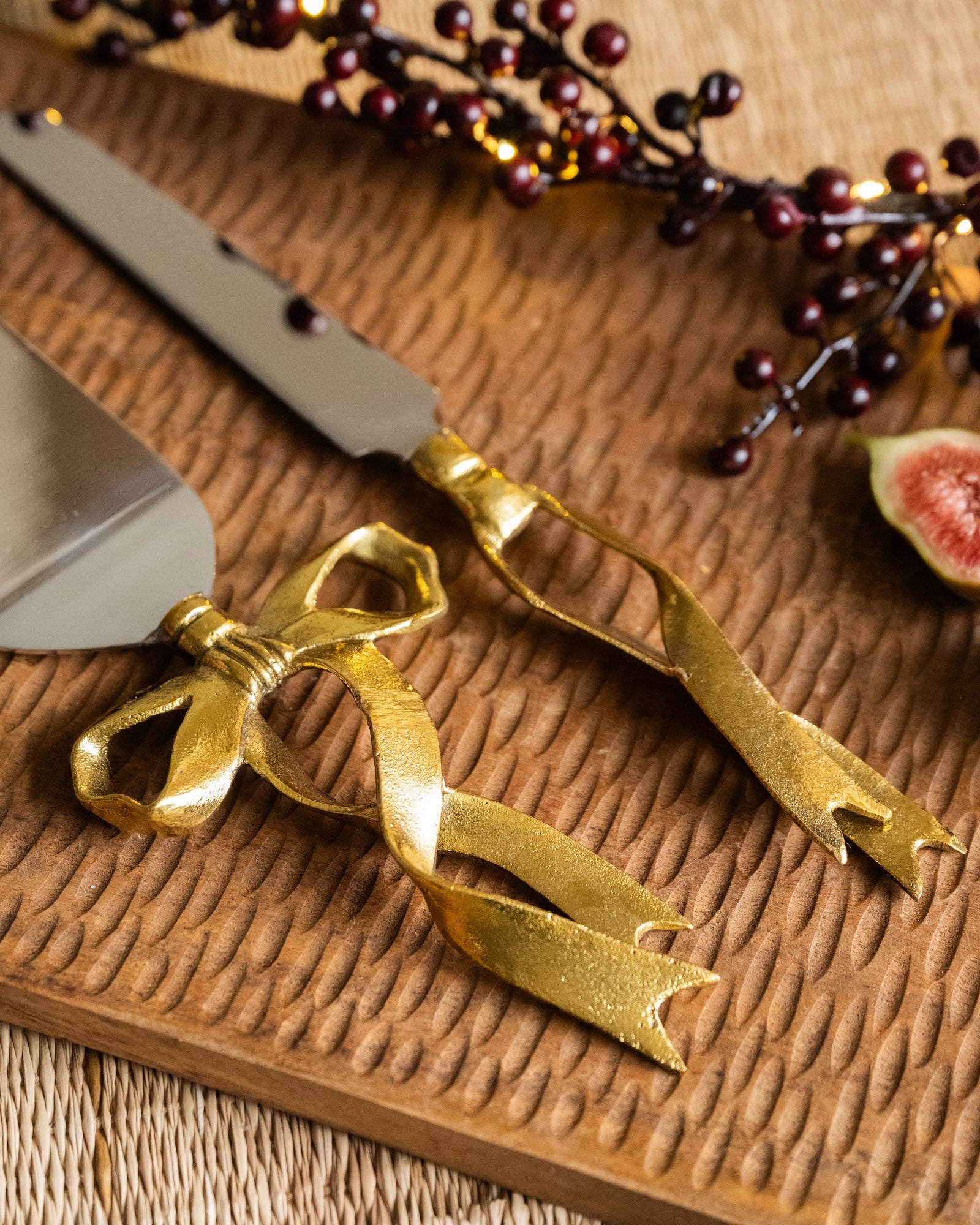 Dieses handgefertigte Set aus recyceltem Messing besticht durch seine glänzenden Goldschleifen. Perfekt für Partys, Abendessen oder jeden Anlass, bei dem Kuchen auf dem Tisch steht. Die schöne Verpackung macht auch als Geschenk großen Spaß!