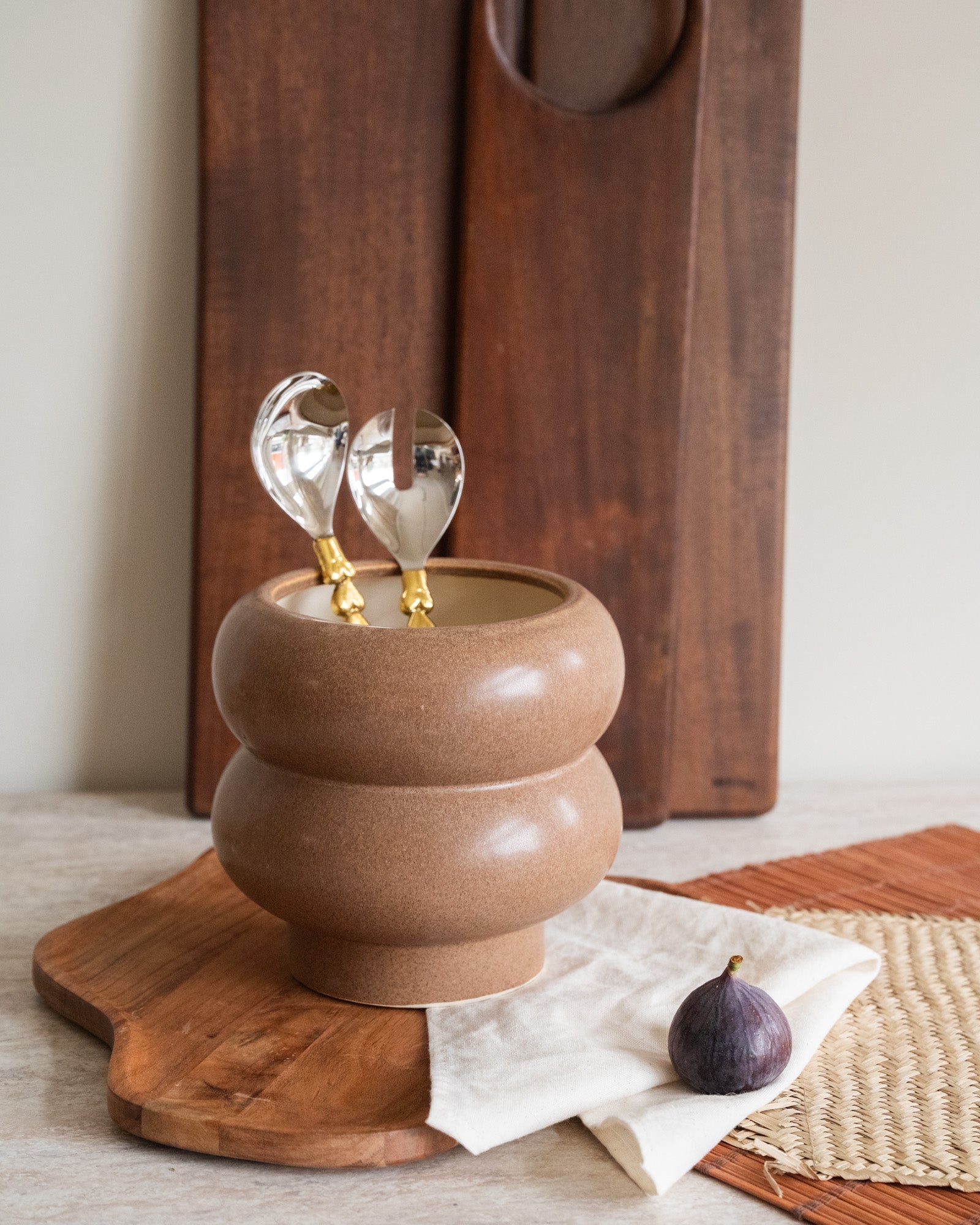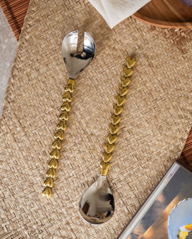 Verleihen Sie Ihrem Esstisch mit diesem Salatbesteck-Set mit goldenen Herz-Akzenten eine charmante Note. Die elegante Gabel und der Löffel eignen sich ideal zum Servieren von Salaten und anderen Gerichten. Verpackt in einer schönen Geschenkbox ist dieses Set das perfekte Geschenk für Feinschmecker oder eine stilvolle Ergänzung für Ihren eigenen Tisch.