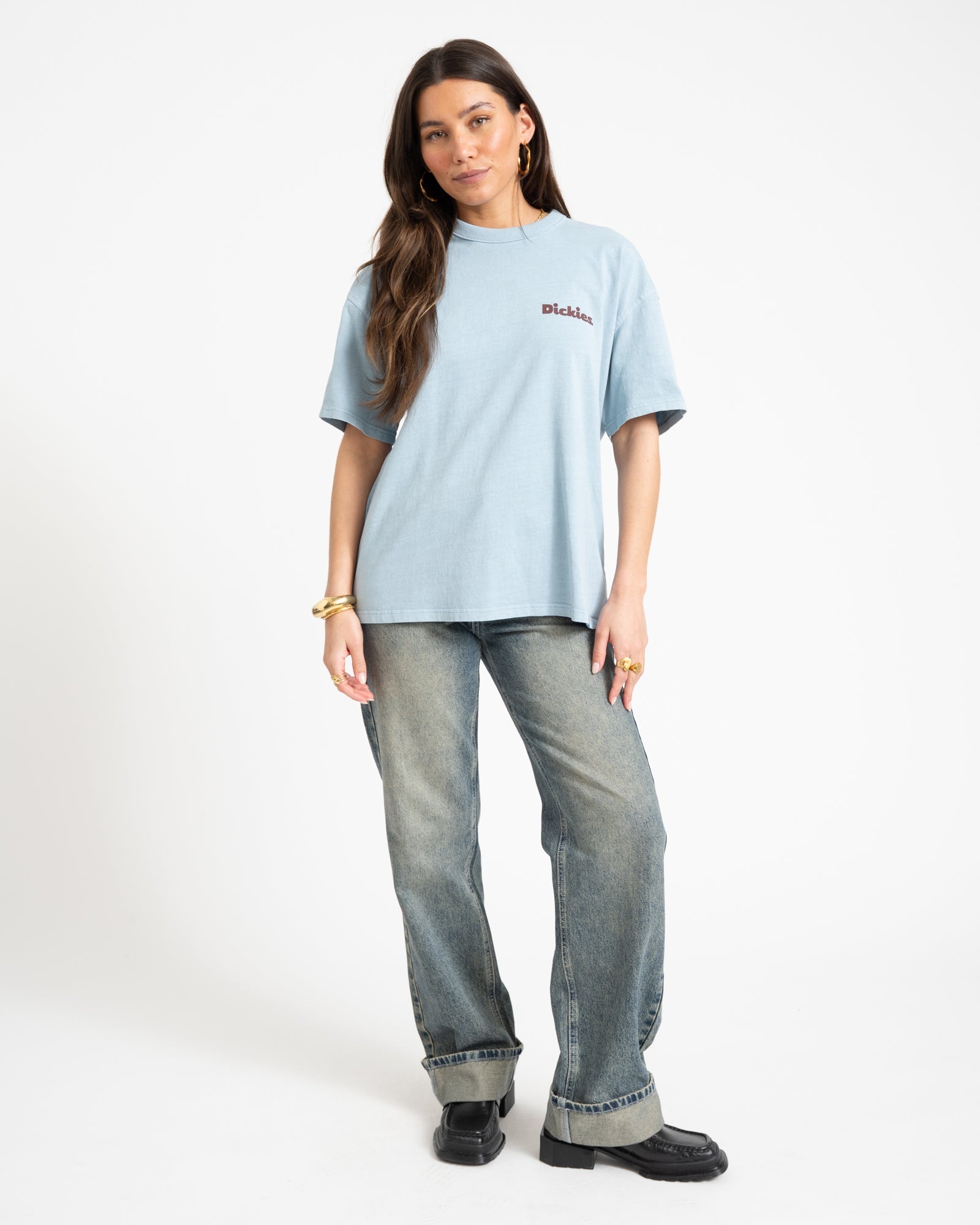 Dieses hellblaue Dickies-T-Shirt ist ein Must-have für jeden Tag: Oversize-Look, weicher Stoff und dezenter Logo-Print.
