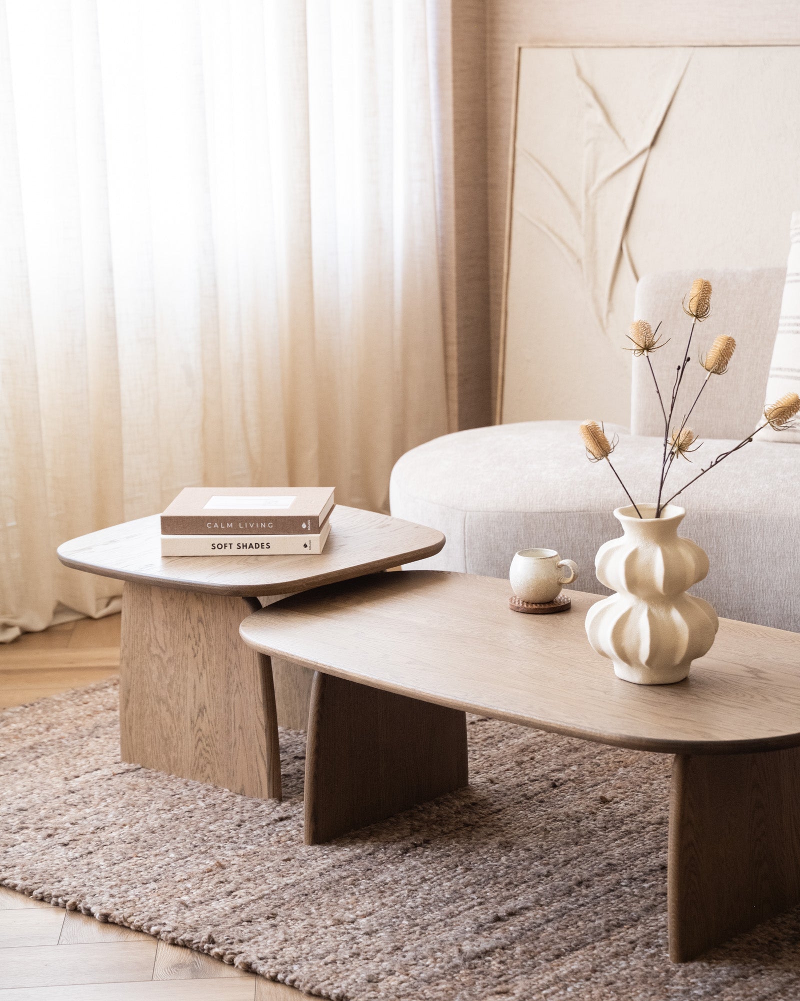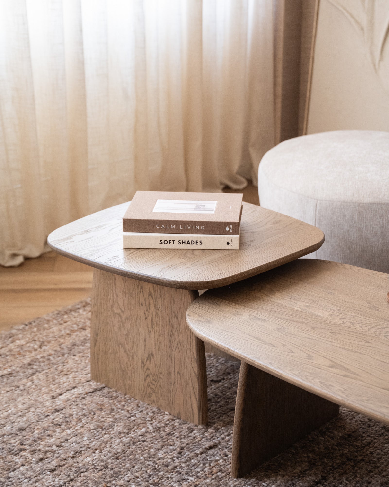 Der Beistelltisch Tablo aus Eiche ist ein robuster und stilvoller Eichenholztisch mit einer warmen, natürlichen Ausstrahlung. Seine organische Form und die stabilen Beine verleihen ihm einen modernen und zugleich zeitlosen Charakter – perfekt neben Sofa oder Sessel. Er wirkt für sich allein schon großartig, harmoniert aber auch wunderbar mit dem Couchtisch Tablo aus Eiche und sorgt so für einen verspielten Look in Ihrem Wohnzimmer.