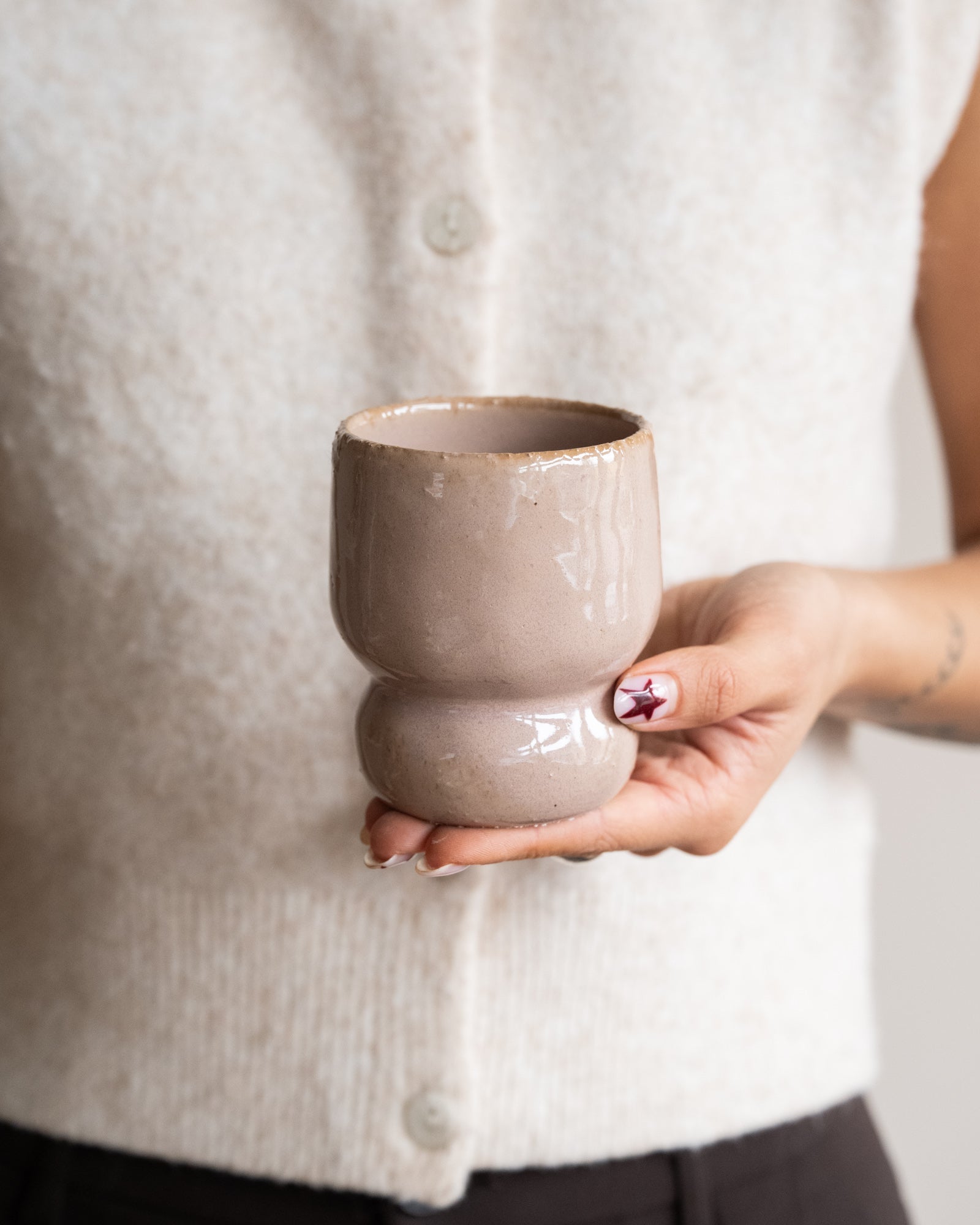 Der Becher Kite Beige ist ein stilvoller Becher aus recycelter Keramik in einem sanften Beigeton. Seine organische Form und die glänzende Oberfläche verleihen ihm einen warmen, minimalistischen Look, der perfekt in ein ruhiges und modernes Interieur passt. Er eignet sich ideal für Kaffee, Tee oder Cappuccino und lässt sich wunderbar mit anderem Geschirr zu einer stilvollen Tischdekoration kombinieren.