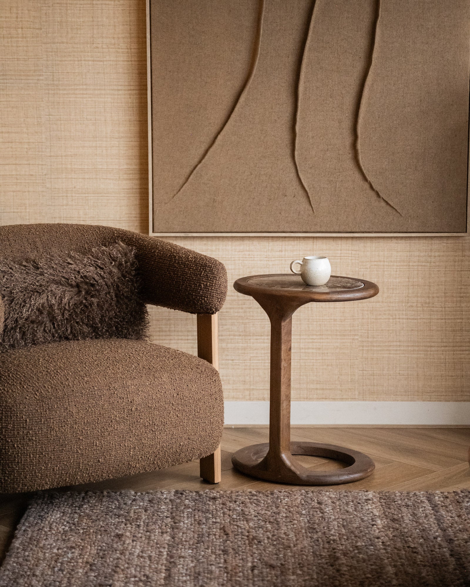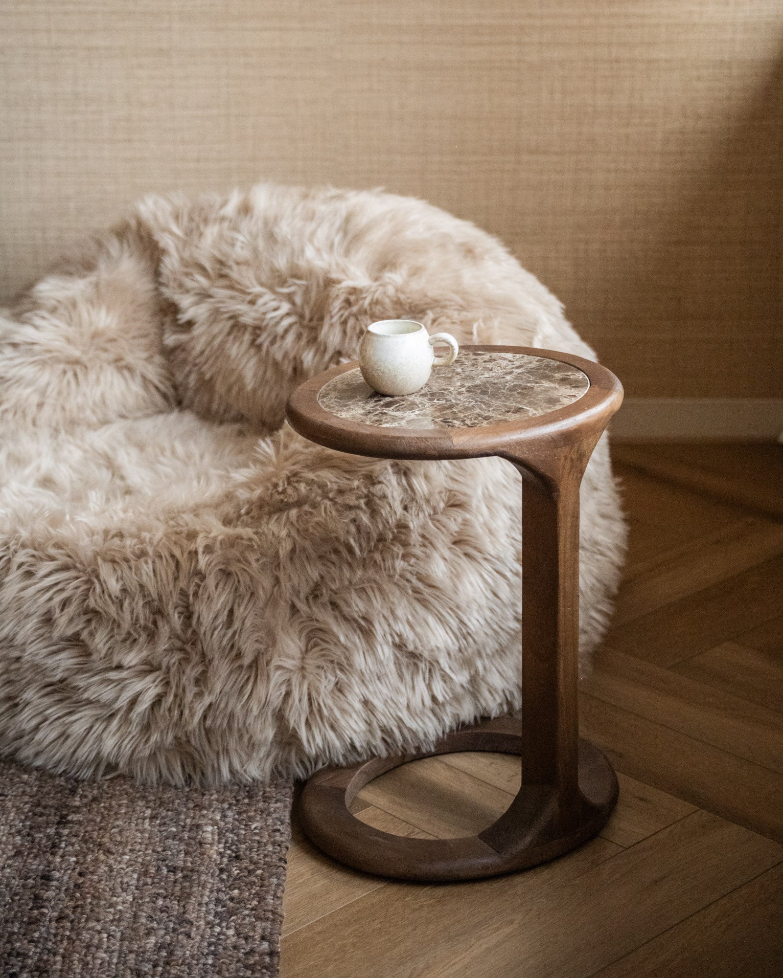 Der Beistelltisch Tovio Marble vereint warmes Mangoholz mit einer eleganten Marmorplatte und verleiht Ihrem Interieur einen raffinierten, modernen Look. Das abgerundete Design und die natürlichen Materialien setzen einen ruhigen und zugleich luxuriösen Akzent. Er eignet sich perfekt als stilvoller Beistelltisch neben Sofa oder Sessel.