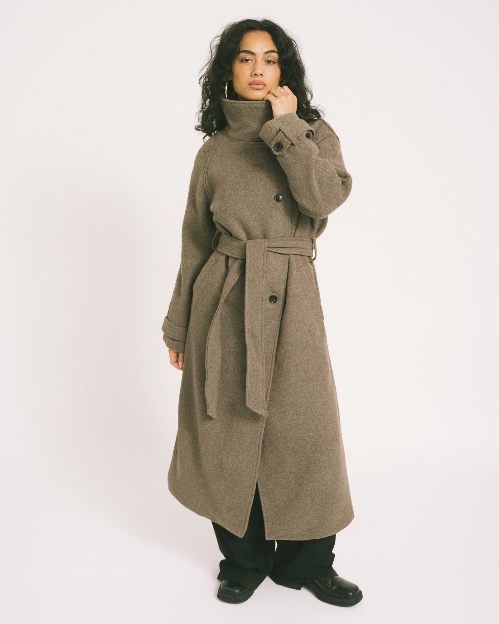 Die perfekte Balance zwischen Stil und Komfort. Dieser lange Wollmantel ist aus einem weichen Wollgemisch gefertigt und hat eine lässige, Oversized-Passform, die sich mühelos über jedes Outfit legt.