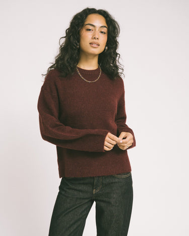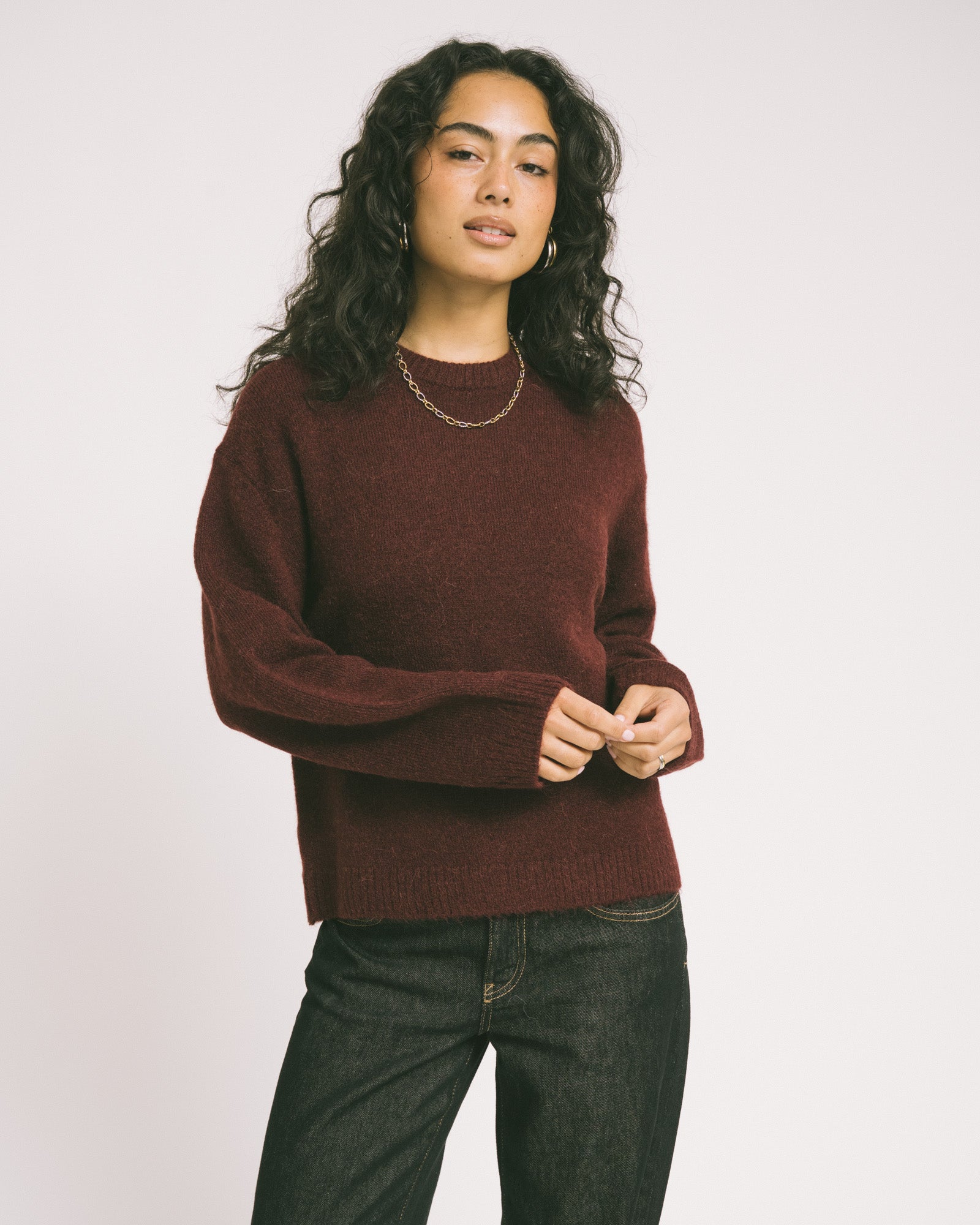 Dieser burgunderfarbene Strickpullover mit Rundhalsausschnitt ist die perfekte Mischung aus Gemütlichkeit und Stil. Die satte Farbe und der weiche Strick verleihen jedem Look Wärme und Klasse.