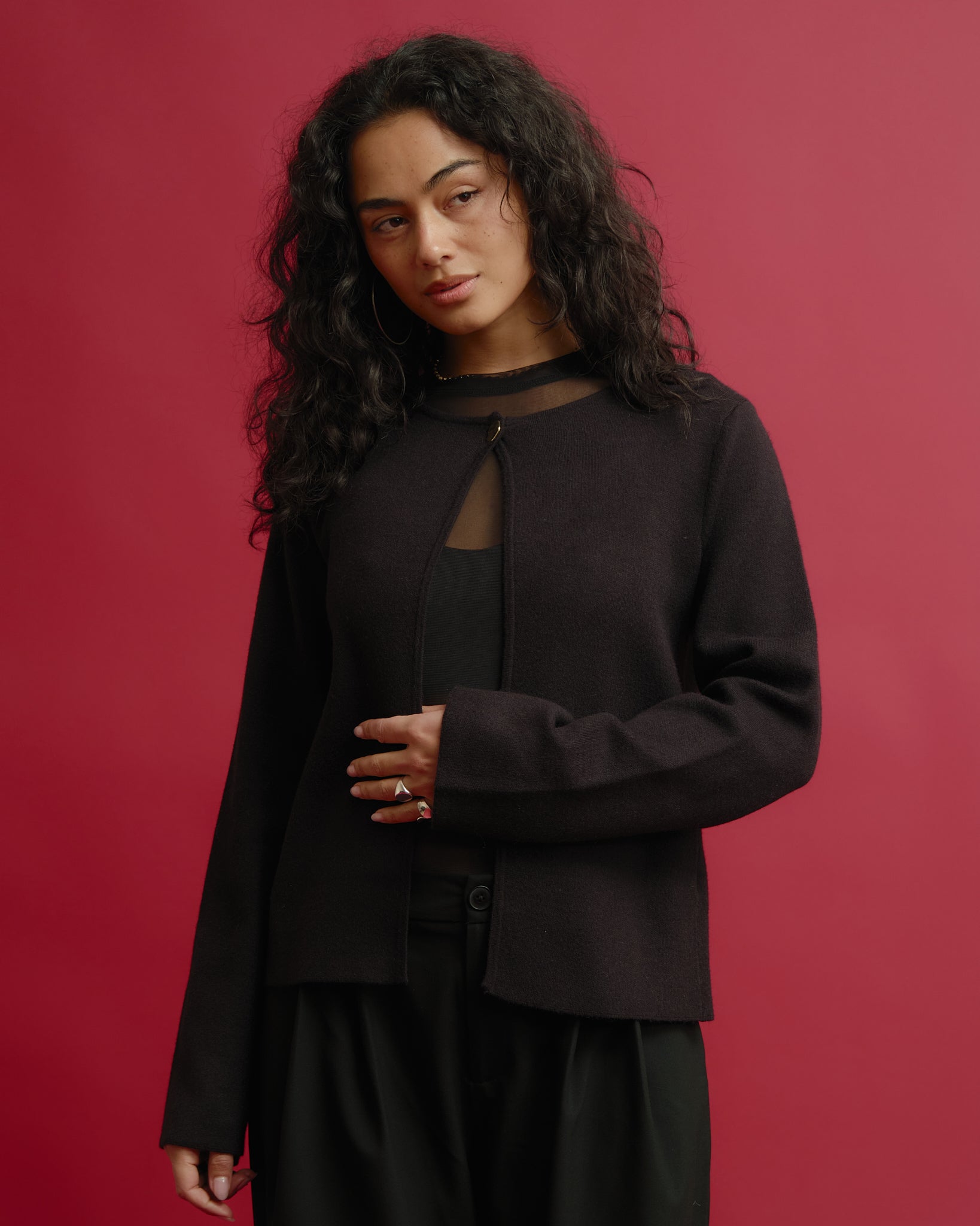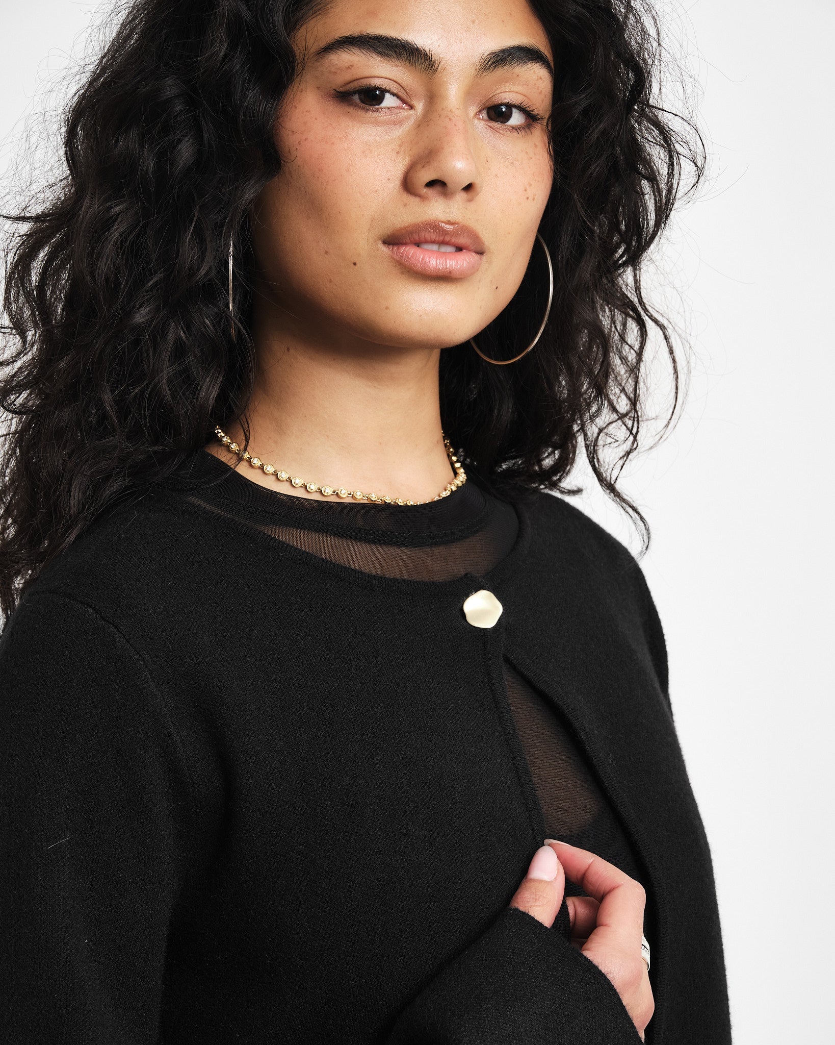 Das perfekte Basic mit einem raffinierten Twist. Der weiche Strick und das einzelne goldene Knopfdetail sorgen für einen zeitlos eleganten Look.