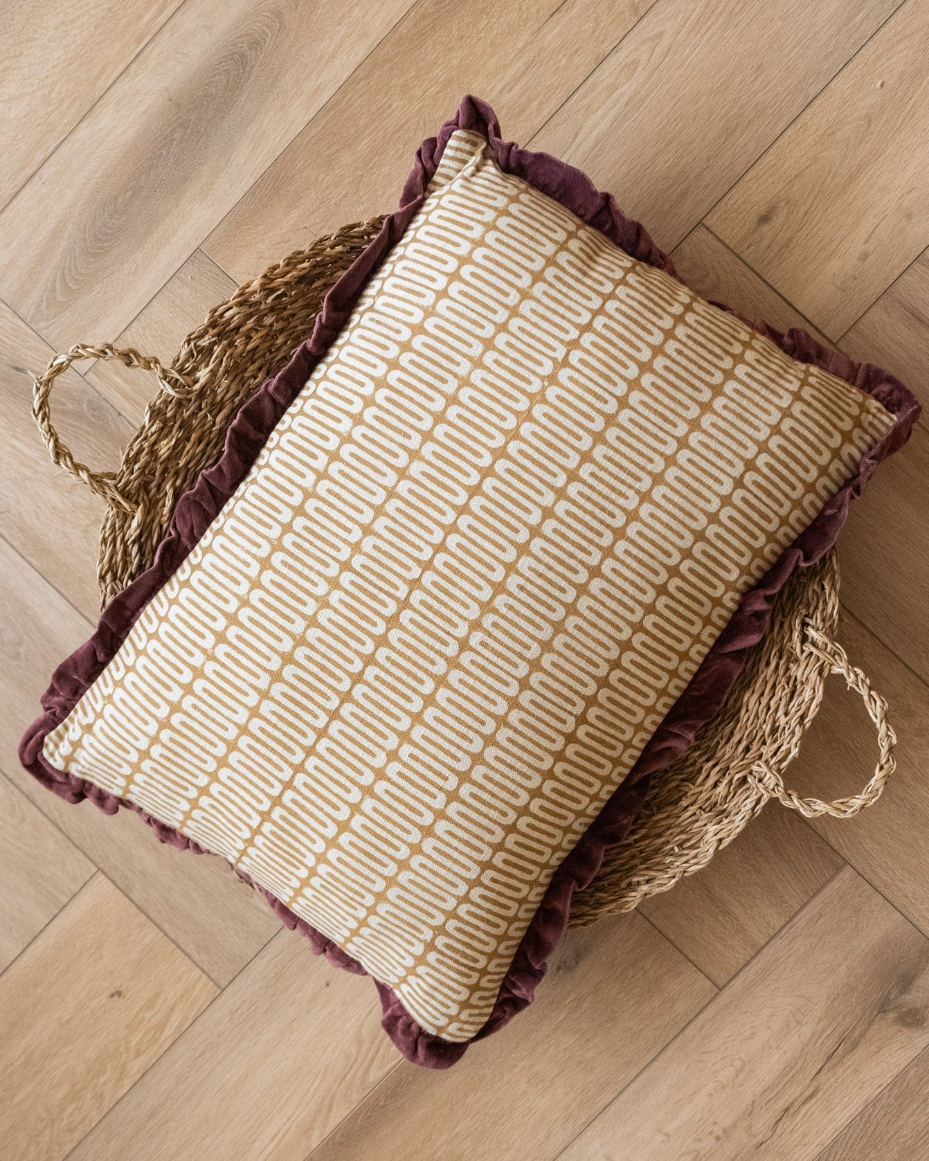 Kissen mit Blumenmuster, Burgunderrot/Ocker