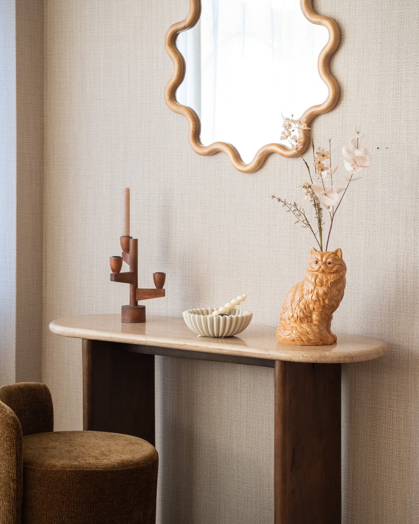 Die Dekovase „Katze Orange“ ist ein absoluter Blickfang für jedes Interieur mit Persönlichkeit. Diese Keramikvase in warmem Orange besticht durch ihre verspielte Katzenform und verleiht Ihrem Raum sofort eine fröhliche und gemütliche Note. Dekorieren Sie sie mit Trockenblumen oder Seidenzweigen oder lassen Sie sie als Solitär für sich wirken. Ob auf einer Konsole, einem Sideboard oder einem Regal – sie ist die perfekte Ergänzung für Ihr Zuhause und verleiht ihm das gewisse Extra.