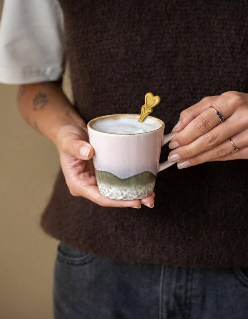 Beginnen Sie Ihren Tag stilvoll mit dieser eleganten Keramiktasse. Die zarten Rosatöne gehen subtil in Grün und Creme über und verleihen jeder Tasse einen einzigartigen Charakter. Perfekt für Kaffee, Tee oder heiße Schokolade – eine stilvolle Ergänzung für Ihr Geschirr.