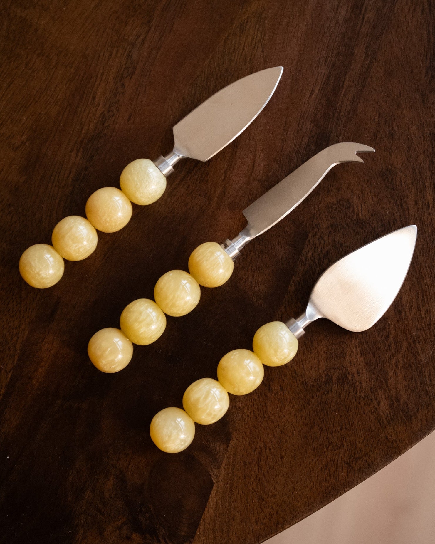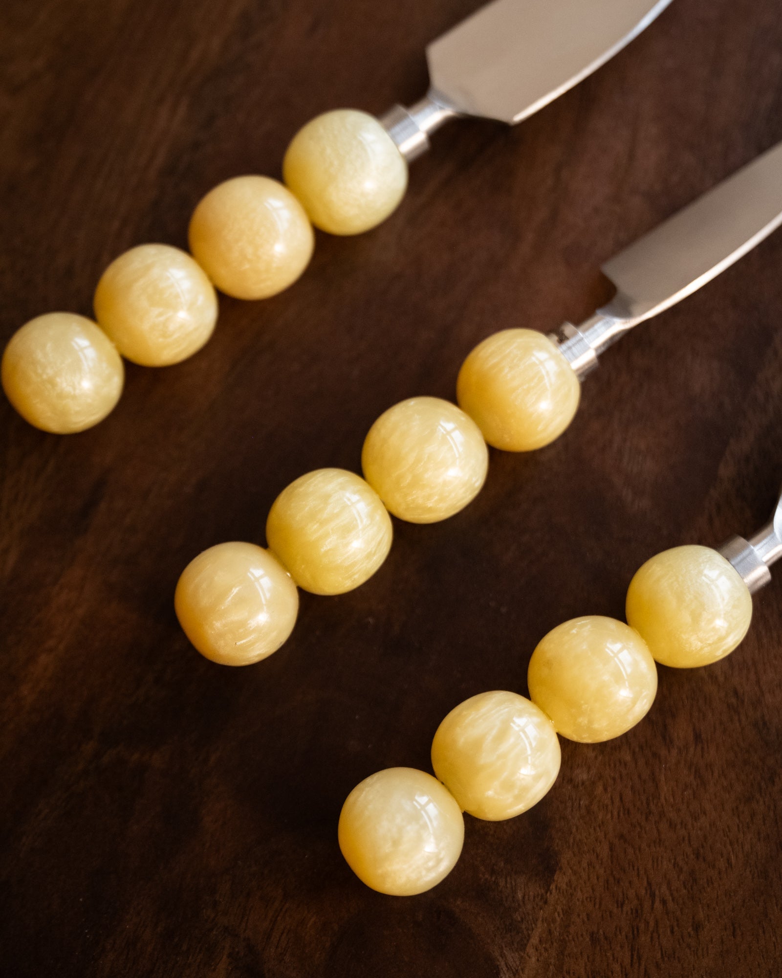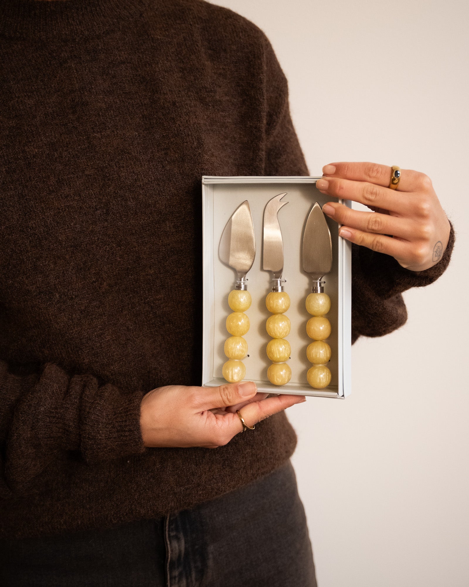 Verleihen Sie Ihrer Getränkeplatte mit diesem fröhlichen 3er-Set Käsemesser von HKliving Farbe und Charme. Die verspielten, zitronengelben Griffe aus Kunstharz machen jeden Käseabend zu etwas ganz Besonderem. Die Klingen aus Edelstahl eignen sich für eine Vielzahl von Käsesorten – von cremig und weich bis hart und bröckelig.