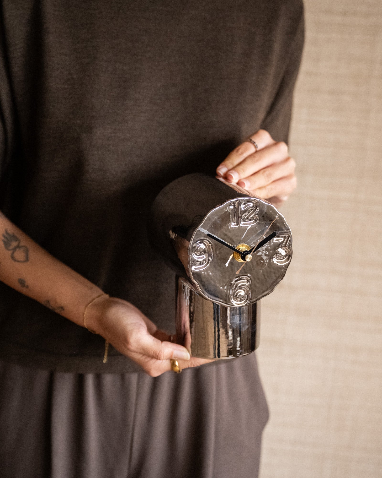 Die HKLIVING Uhr Retro Chrome vereint Funktionalität mit Charme. Durch den handwerklichen Brennvorgang wird jede Uhr zu einem Unikat mit dezenten Unregelmäßigkeiten, die ihr Charakter verleihen. Die polierte Chromoberfläche und die handbemalten Ziffern erinnern an einen Retro-Stil mit modernem Touch. Ihr kompaktes Design und der metallische Glanz machen sie zu einem zeitlosen Blickfang in jedem Interieur.