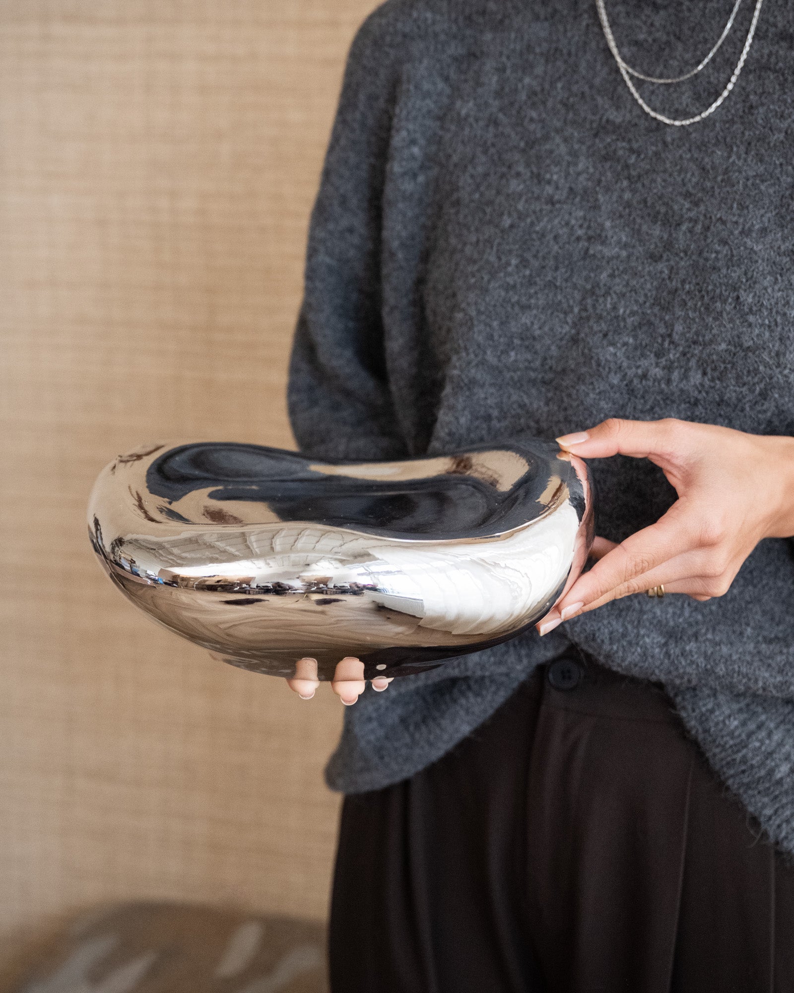 Chrom ist der aktuelle Trend im Interior Design, direkt aus der Y2K-Revival-Ära und der Welt des High-End-Designs. Diese Schale bringt mühelos luxuriöses, modernes Flair in Ihr Zuhause. Ein ausdrucksstarkes, zeitloses Designobjekt, das nie aus der Mode kommt.