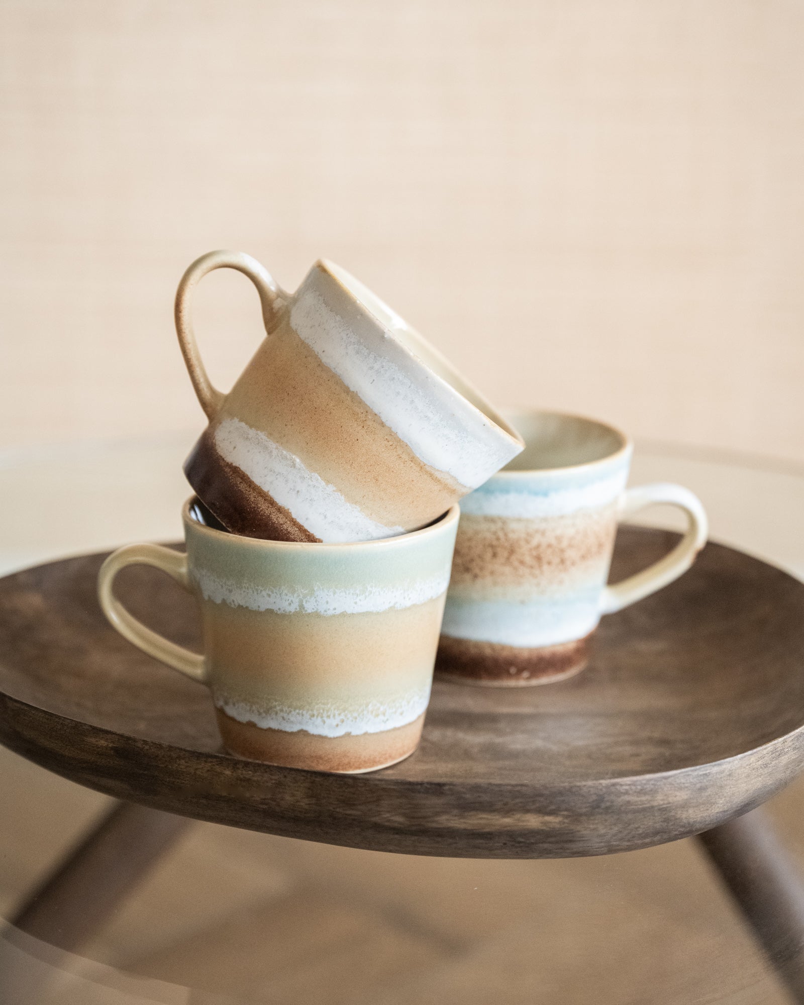 Die Skyline-Tasse ist von jahrzehntelanger Kunst inspiriert. Jedes Stück kombiniert kräftige Oberflächen und strukturierte Glasuren für einen Look, der sowohl sorgfältig als auch kreativ wirkt. Perfekt für Ihren Morgenkaffee und passt wunderbar zu anderen HKLIVING-Tassen.