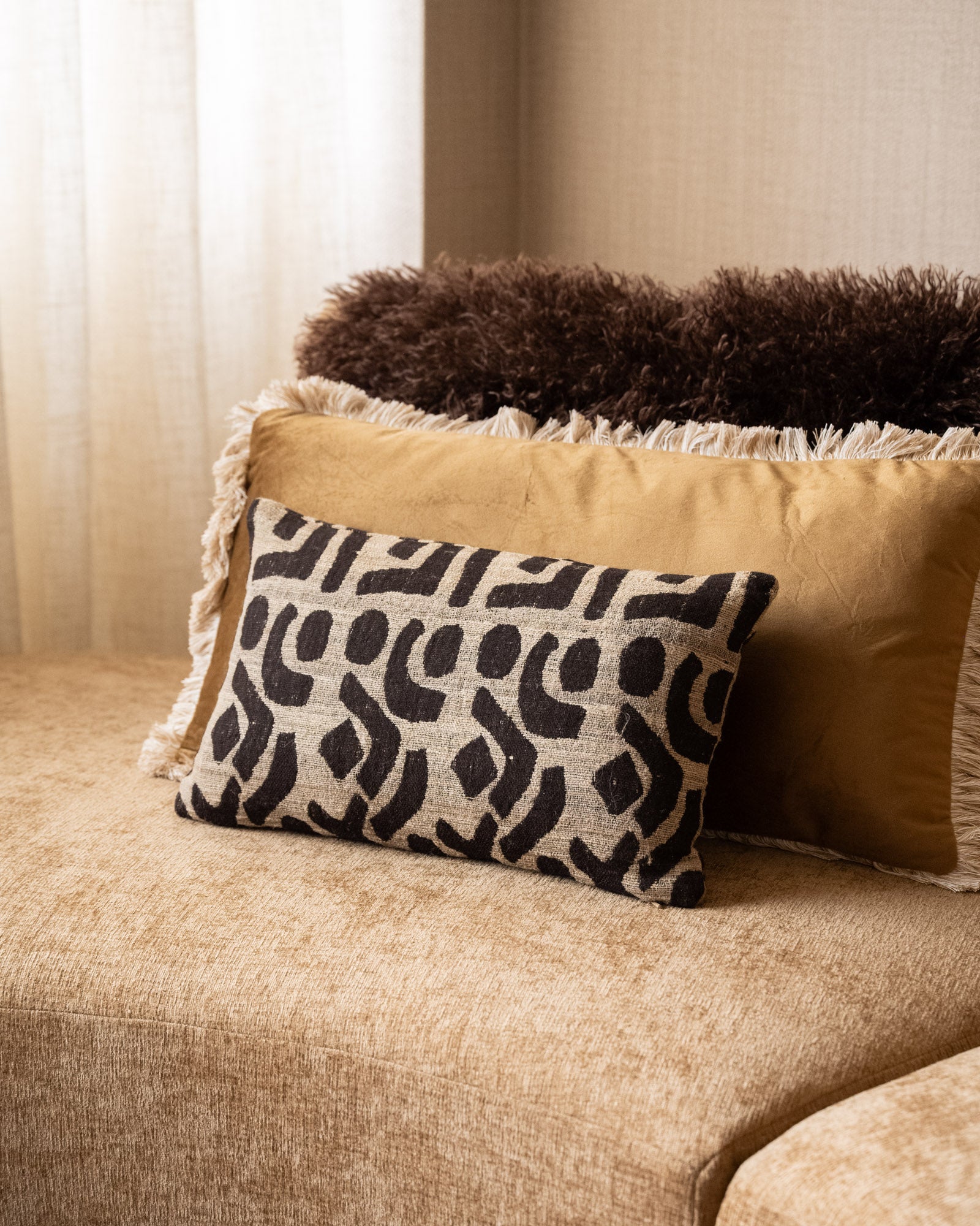 Schaffen Sie das ultimative Retro-Gefühl in Ihrem Zuhause. Der entspannte Komfort und die organischen Drucke machen dieses gewebte Kissen so schön und zeitlos. Die warmen Farben und die weiche Polsterung verleihen jeder Sitzecke das gewisse Etwas.