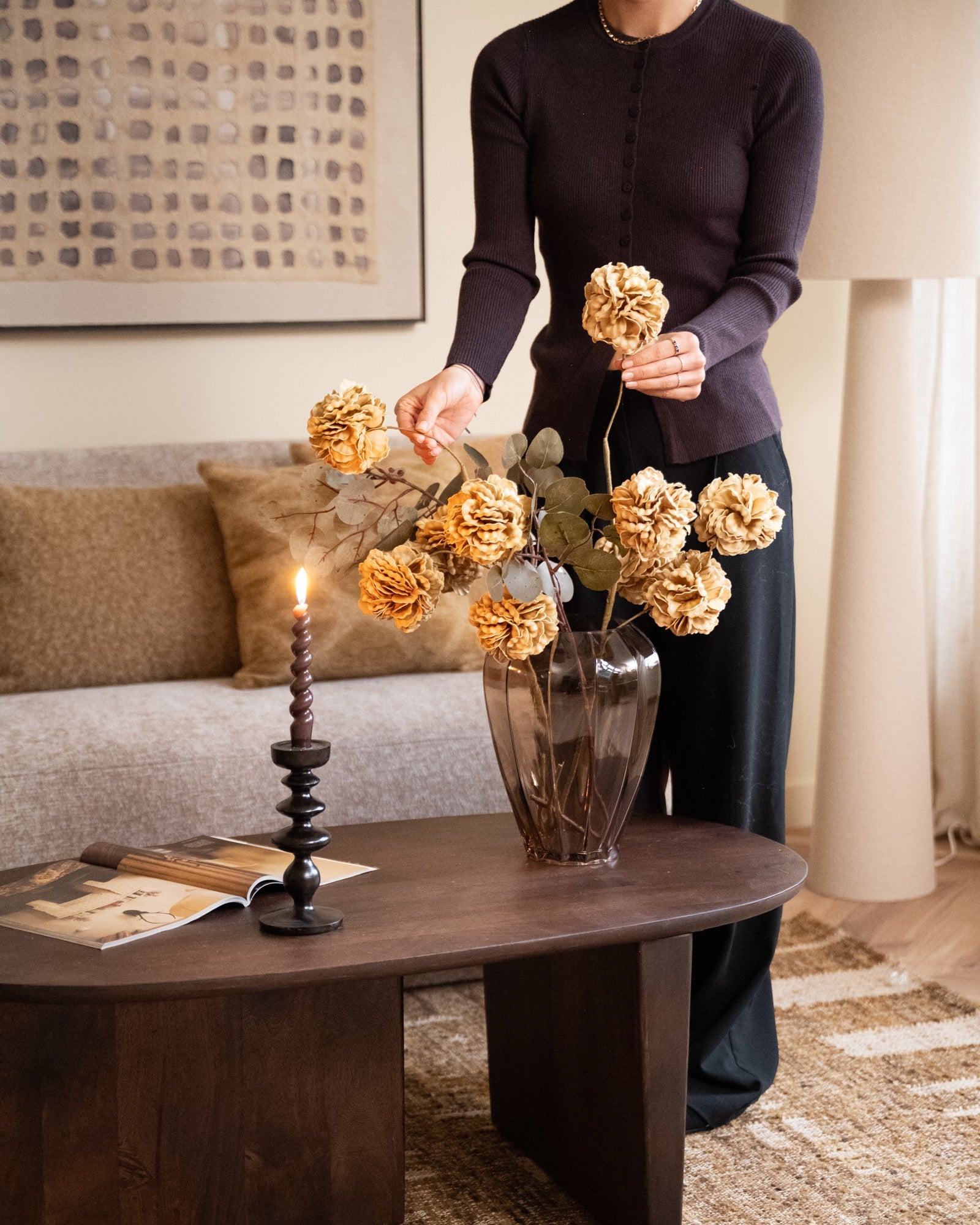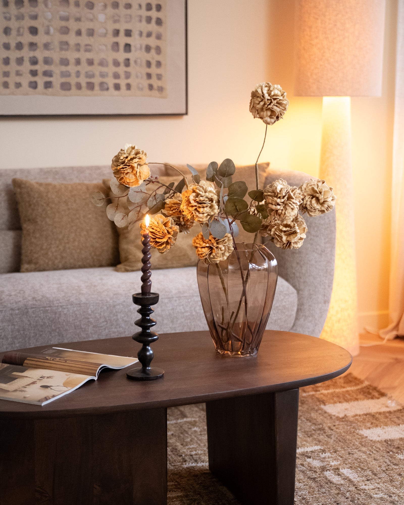 Diese rautenförmige Glasvase ist ein echter Hingucker! Perfekt für einen frischen Blumenstrauß, aber auch schön mit ein paar stilvollen Kunst- oder Trockenblumen. Die warme Braunfarbe schimmert dezent durch das Glas und verleiht Ihrem Interieur eine elegante Note.