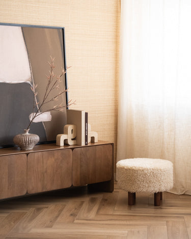 Der Inverness Kunstfell-Pouf ist ein weicher und stilvoller Hocker, der Ihrem Zuhause Wärme und Gemütlichkeit verleiht. Der flauschige Kunstfellbezug in einem hellen Cremeton sorgt für einen behaglichen und luxuriösen Look, während die Holzbeine einen schönen, natürlichen Kontrast bilden. Er eignet sich perfekt als zusätzliche Sitzgelegenheit, Fußhocker oder dekoratives Element im Wohn- oder Schlafzimmer.