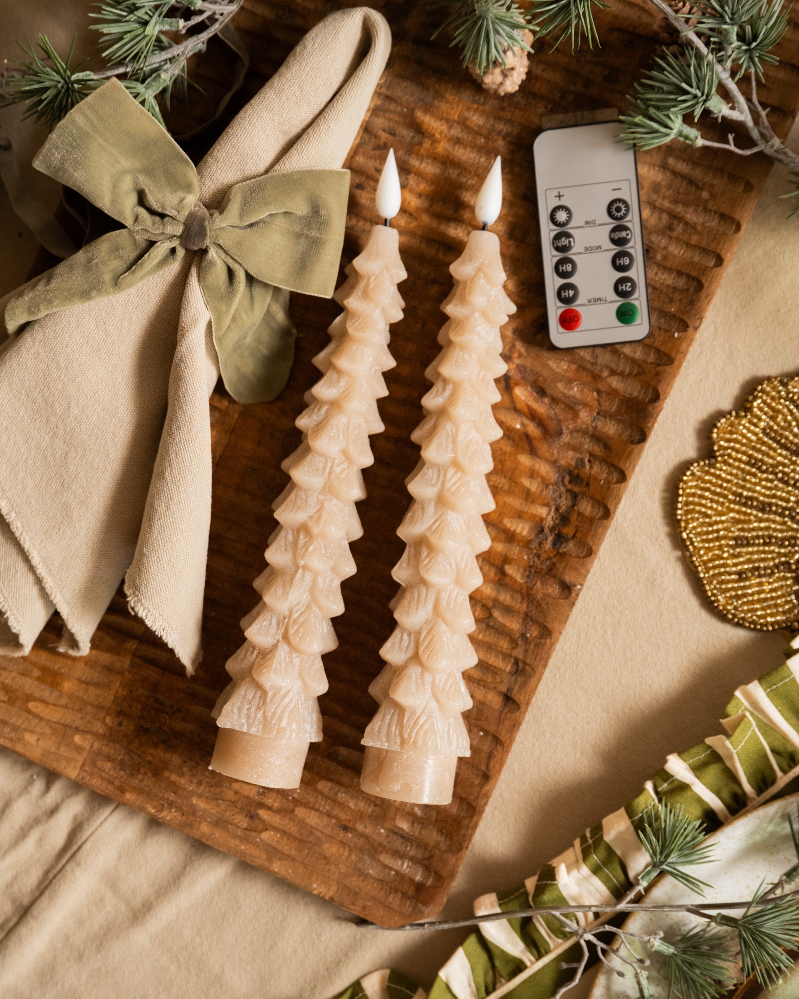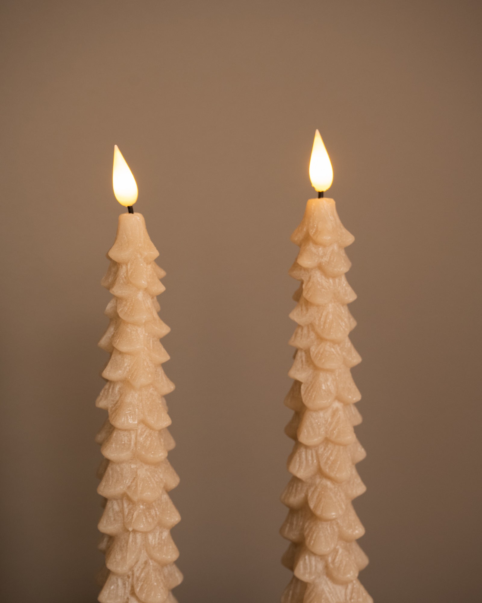 Verleihen Sie Ihrem Zuhause mit diesen LED-Kerzen in Tannenbaumform eine warme Winteratmosphäre. Die realistische Flamme, das sanfte Leuchten und das verspielte Baumdesign machen sie perfekt für den Tisch, den Kaminsims oder als Teil einer weihnachtlichen Tischdekoration. Dank der LED-Beleuchtung genießen Sie den ganzen Abend lang sicheres und stimmungsvolles Licht.