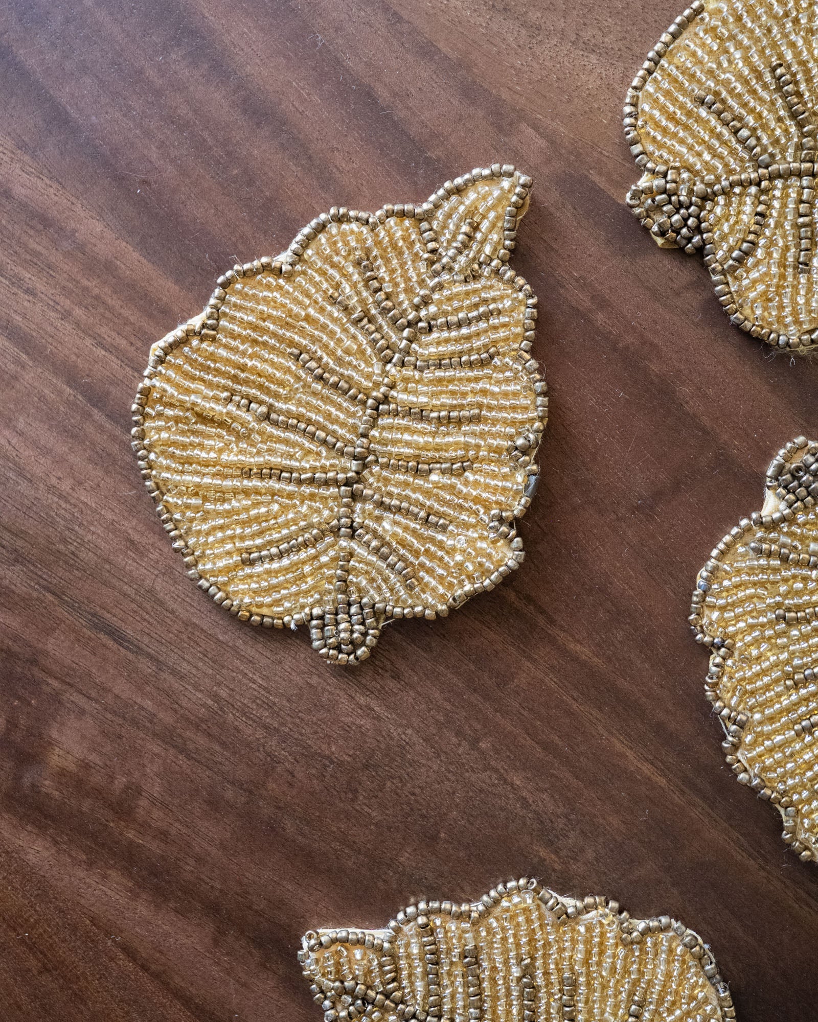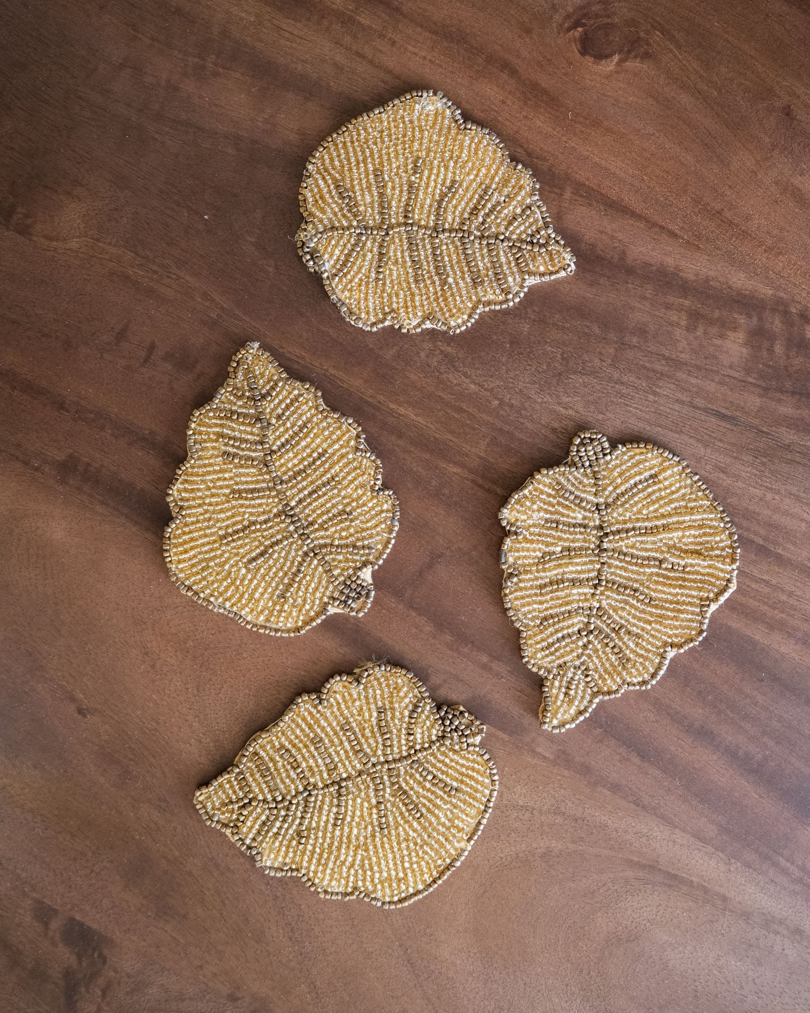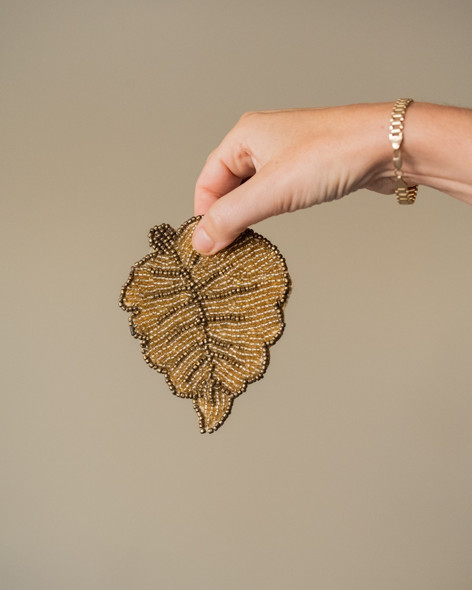 Der Der Finga Leaf Coaster ist ein stilvoller Untersetzer mit einzigartigem Blattmotiv, verziert mit glänzenden Goldperlen. Perfekt, um Ihren Tisch zu schützen und ihm einen Hauch von Luxus zu verleihen.