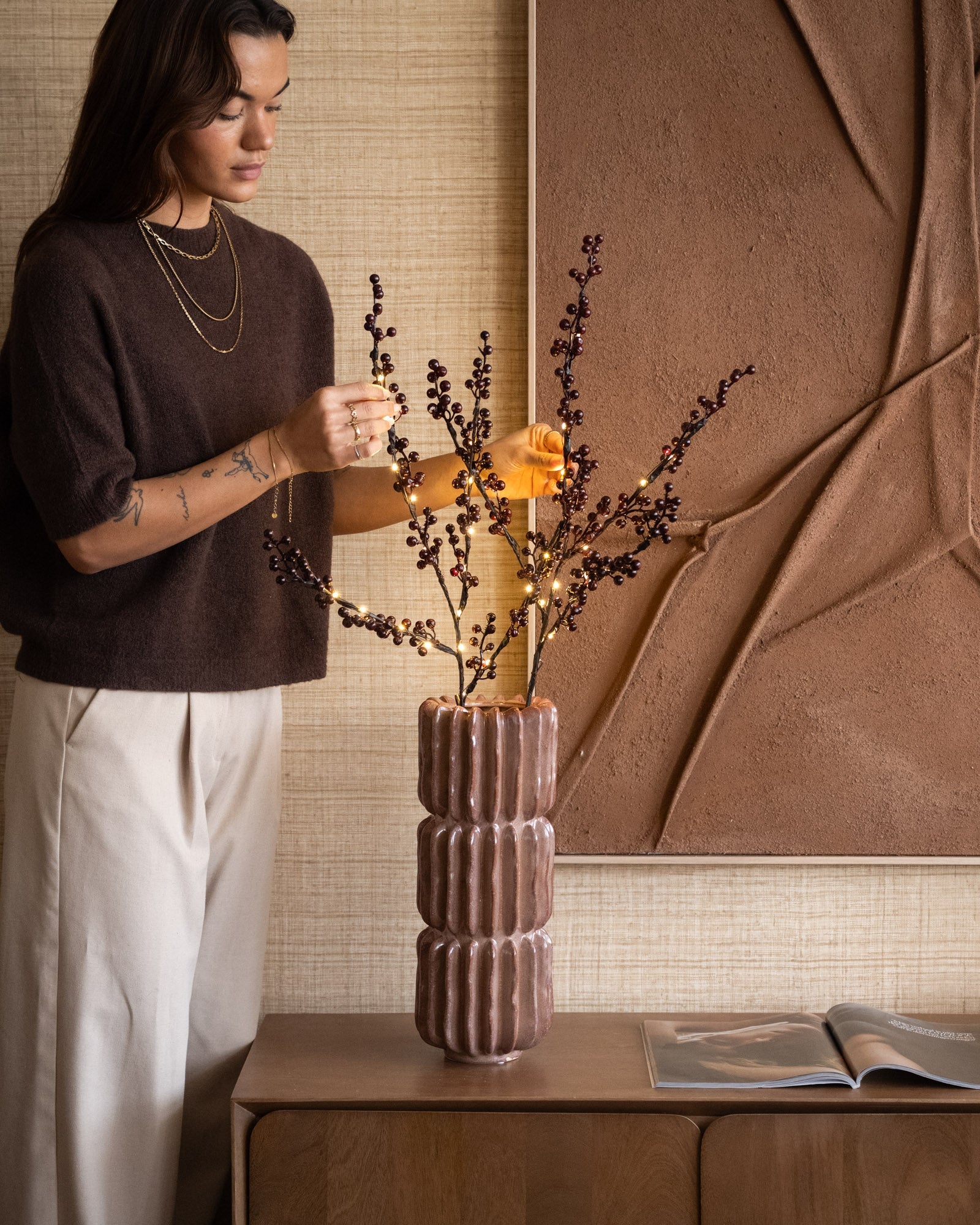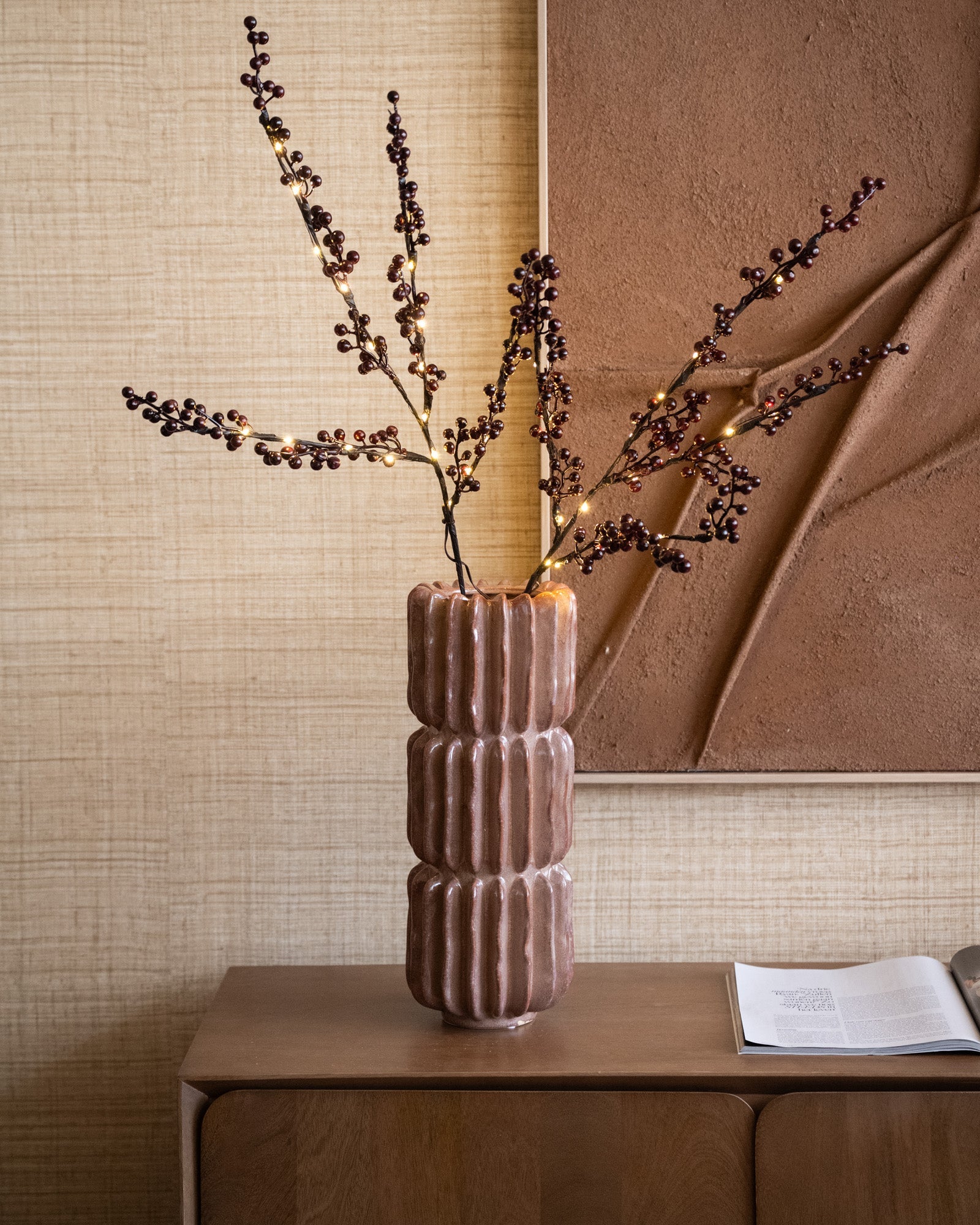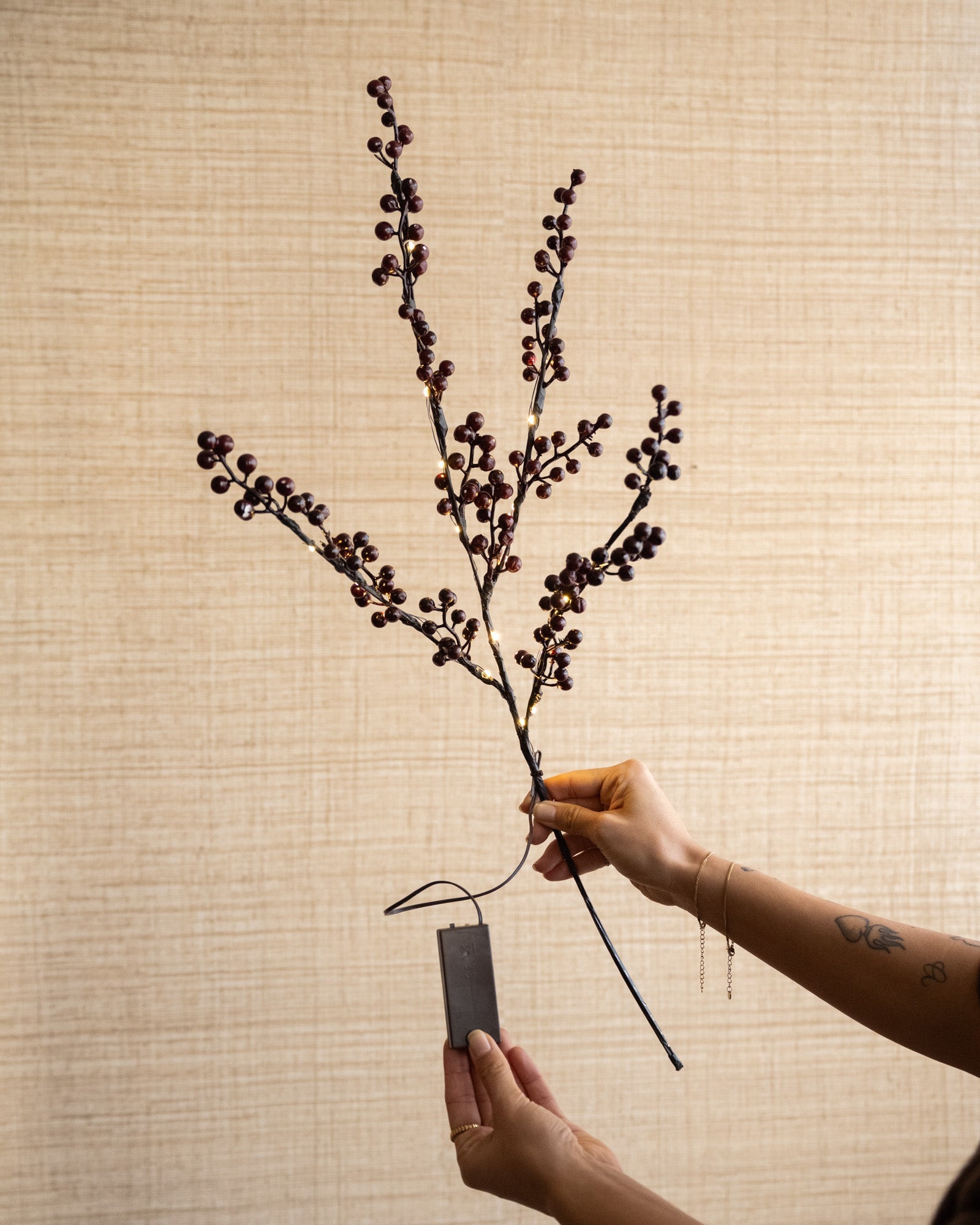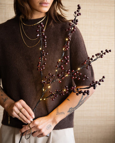 Verleihen Sie Ihrem Zuhause mit den künstlichen Beerenzweigen eine warme Weihnachtsatmosphäre. Die dezenten LED-Lichter erzeugen ein sanftes, gemütliches Licht, das sofort für festliche Stimmung sorgt. Sie sehen wunderschön in einer Vase, auf einem Tisch oder in Kombination mit anderer Weihnachtsdekoration für einen stilvollen Festtagslook aus.