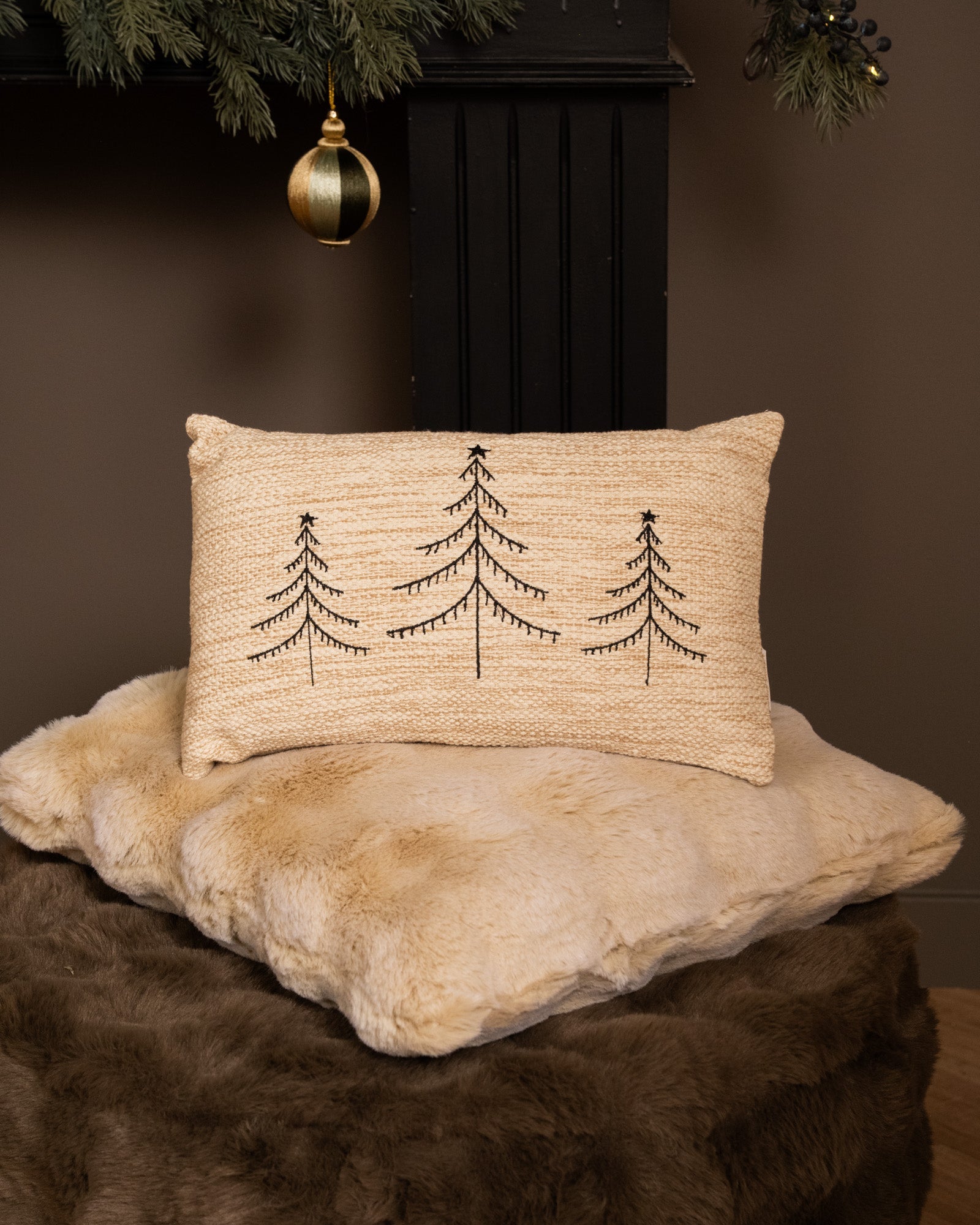 Verleihen Sie Ihrem Zuhause mit dem XMAS Lumi Trees Kissen eine warme Winterstimmung. Der weiche Stoff und die minimalistische Baumstickerei werten Ihr Sofa, Ihren Sessel oder Ihr Bett im Handumdrehen auf und sorgen für ein gemütliches und stilvolles Upgrade. Perfekt zum Kombinieren und um Ihre Einrichtung festlich zu gestalten, ohne dass es überladen wirkt.