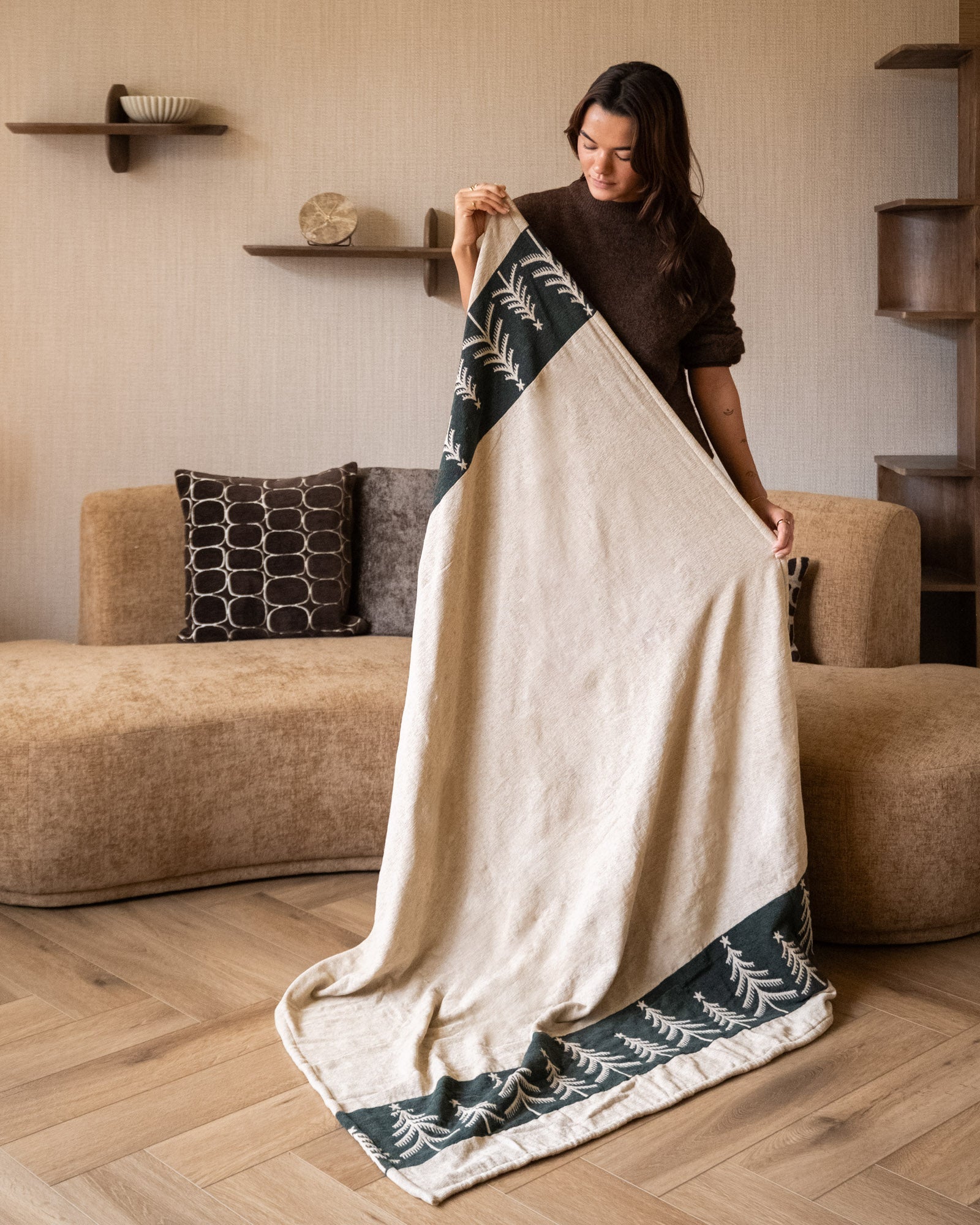 Verleihen Sie Ihrem Zuhause mit der karierten Weihnachtsdecke „Lumi Trees“ Wärme und winterlichen Charme. Diese kuschelige Decke mit stimmungsvoller Weihnachtsbäumchenbordüre in tiefen Grüntönen fühlt sich wunderbar weich an und ist perfekt für Sofa oder Bett. Ein stilvolles Must-have, um im Handumdrehen Weihnachtsstimmung in Ihr Zuhause zu bringen.