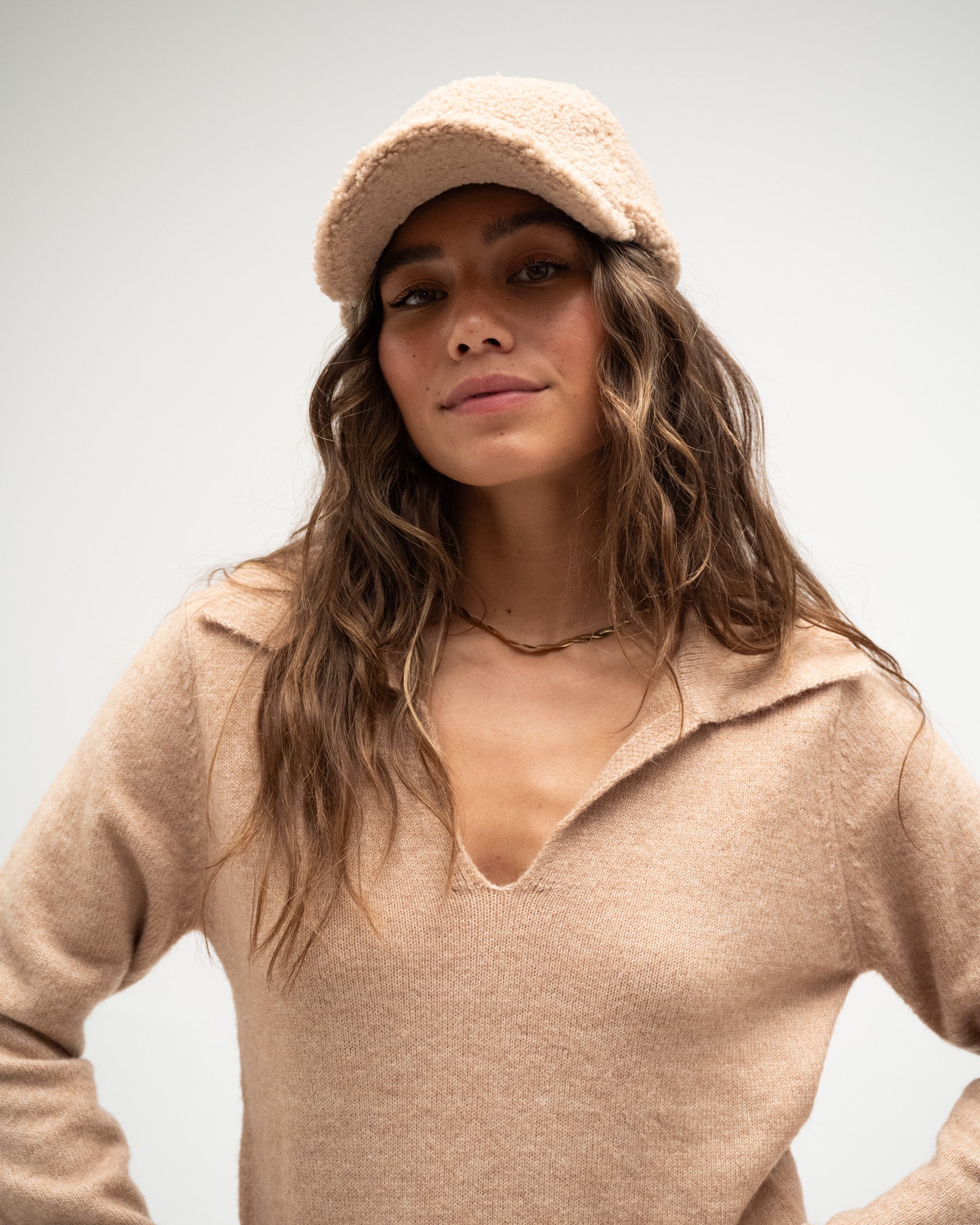 Diese weiche Mütze mit Teddystoff spendet nicht nur Wärme, sondern verleiht jedem Outfit auch eine stilvolle und trendige Note. Perfekt für kalte Tage und einen bequemen, stilvollen Look.