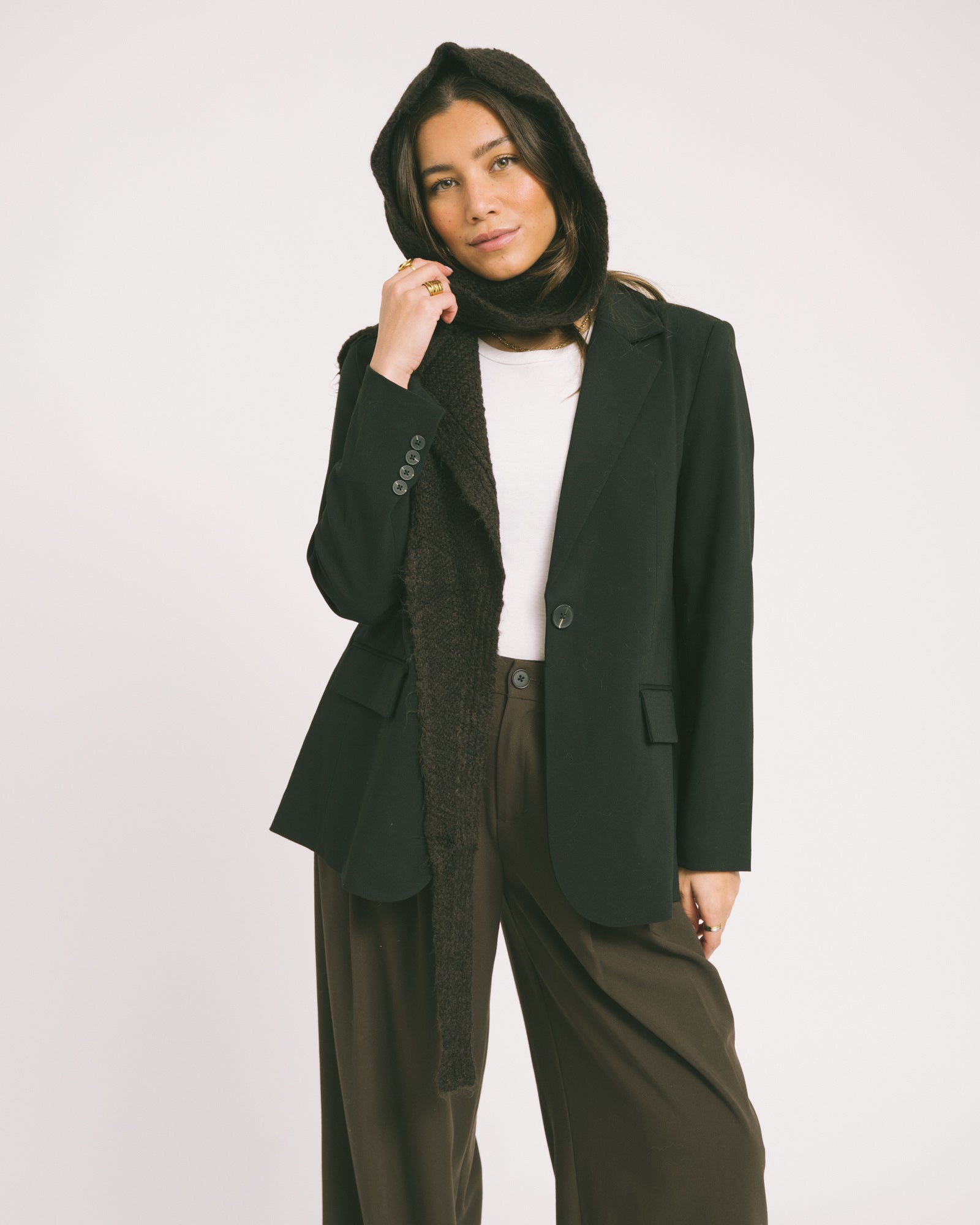 Flauschiger Kapuzenschal Braun