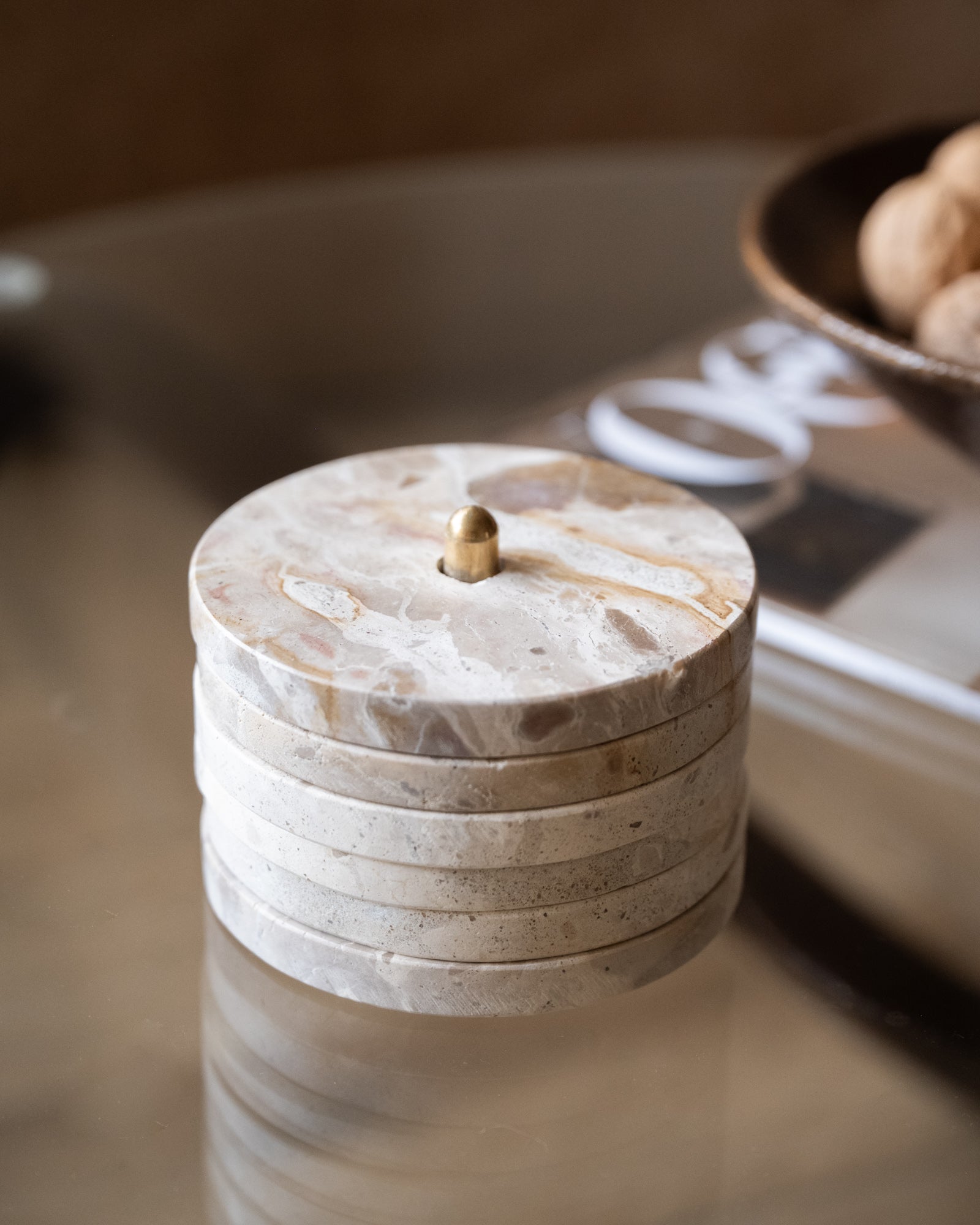 Verleihen Sie Ihrem Interieur mit diesem 5-teiligen Set Marmoruntersetzer einen Hauch von Luxus. Dank der einzigartigen Maserung des Natursteins ist jeder Untersetzer ein Unikat und sorgt so für ein stilvolles Ambiente auf Ihrem Couchtisch. Ideal zum Schutz Ihrer Möbel und zum eleganten Servieren Ihrer Getränke.
