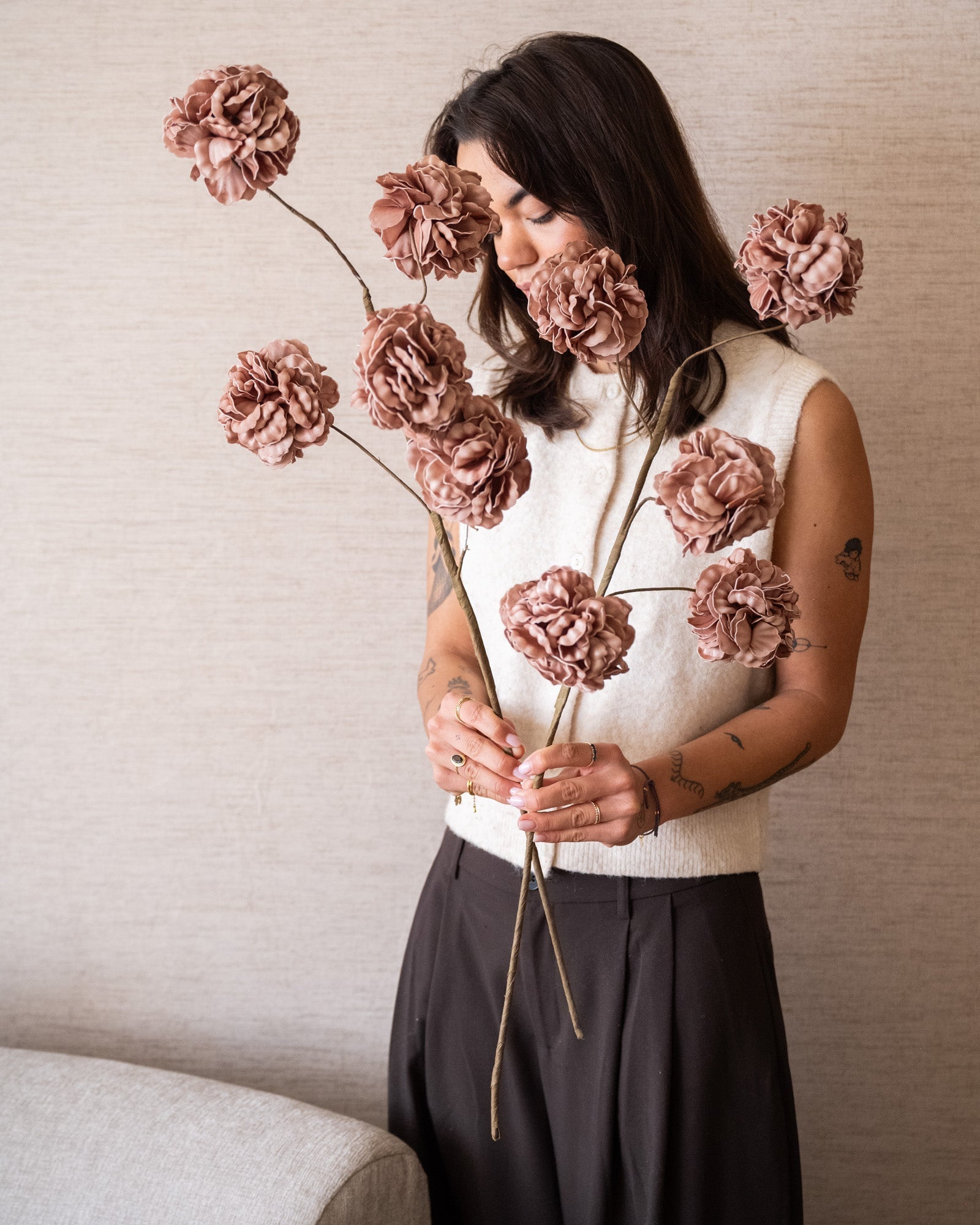 Die Kunstblume Pompom Eva Pink ist eine elegante künstliche Blume mit vollen, pomponartigen Blüten in einem zarten Rosaton. Die realistischen Details und der lange Stiel sorgen für ein natürliches Aussehen. Sie sieht wunderschön in einer Vase mit mehreren Stielen aus oder lässt sich mit anderen Seidenblumen zu einem stilvollen und pflegeleichten Strauß kombinieren.