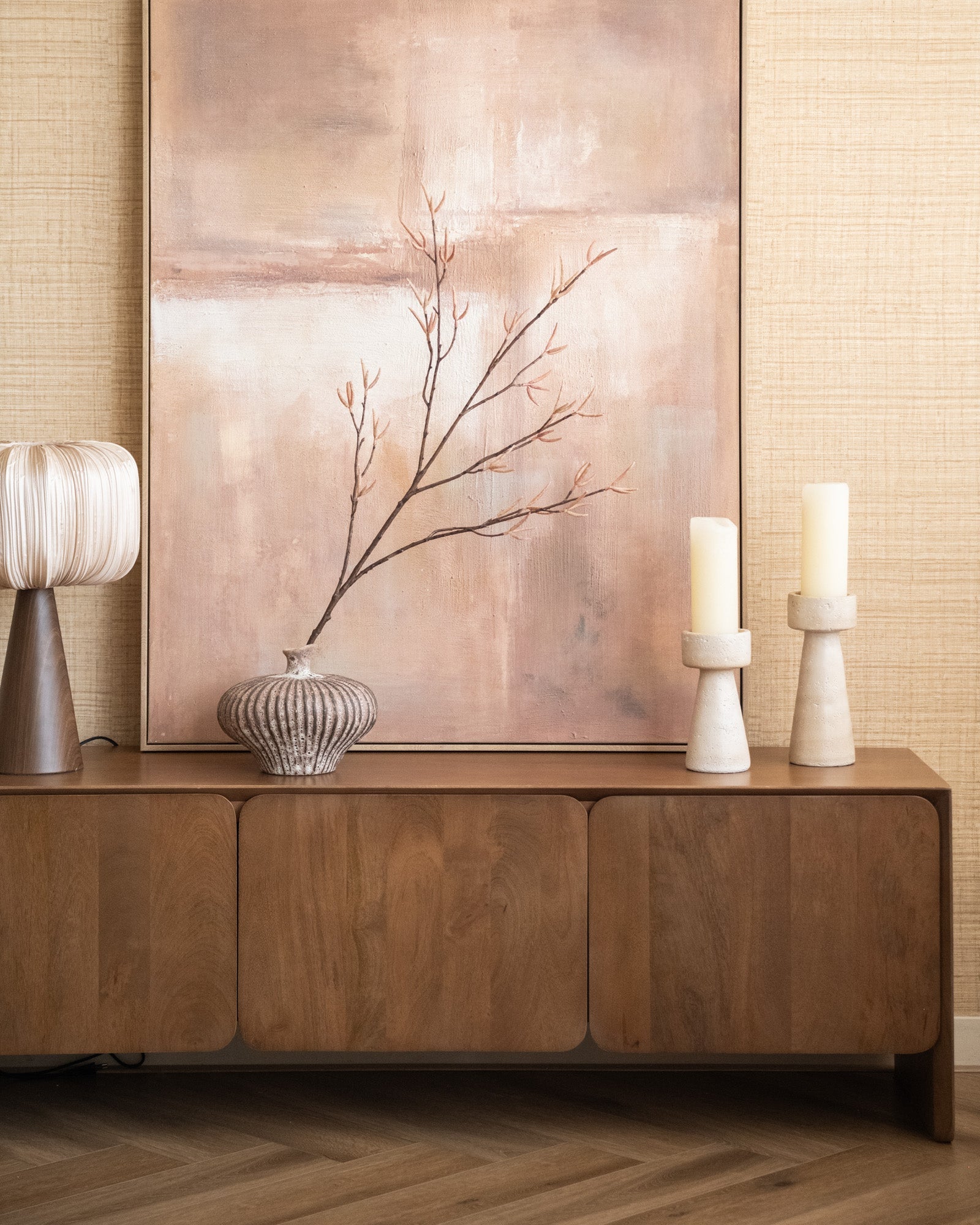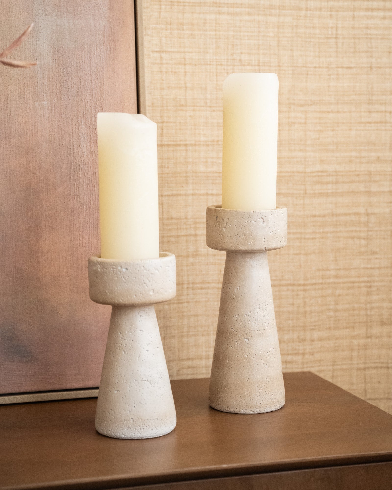 Schaffen Sie mit dem beigefarbenen Kerzenhalter Olina eine warme und friedliche Atmosphäre in Ihrem Zuhause. Seine minimalistische Form und die dezente, natürliche Textur verleihen ihm einen stilvollen, zeitlosen Look. Er eignet sich perfekt für Kommode, Couchtisch oder Nachttisch. Erhältlich in klein und mittel, wirken die Kerzenhalter einzeln oder zusammen wunderschön.