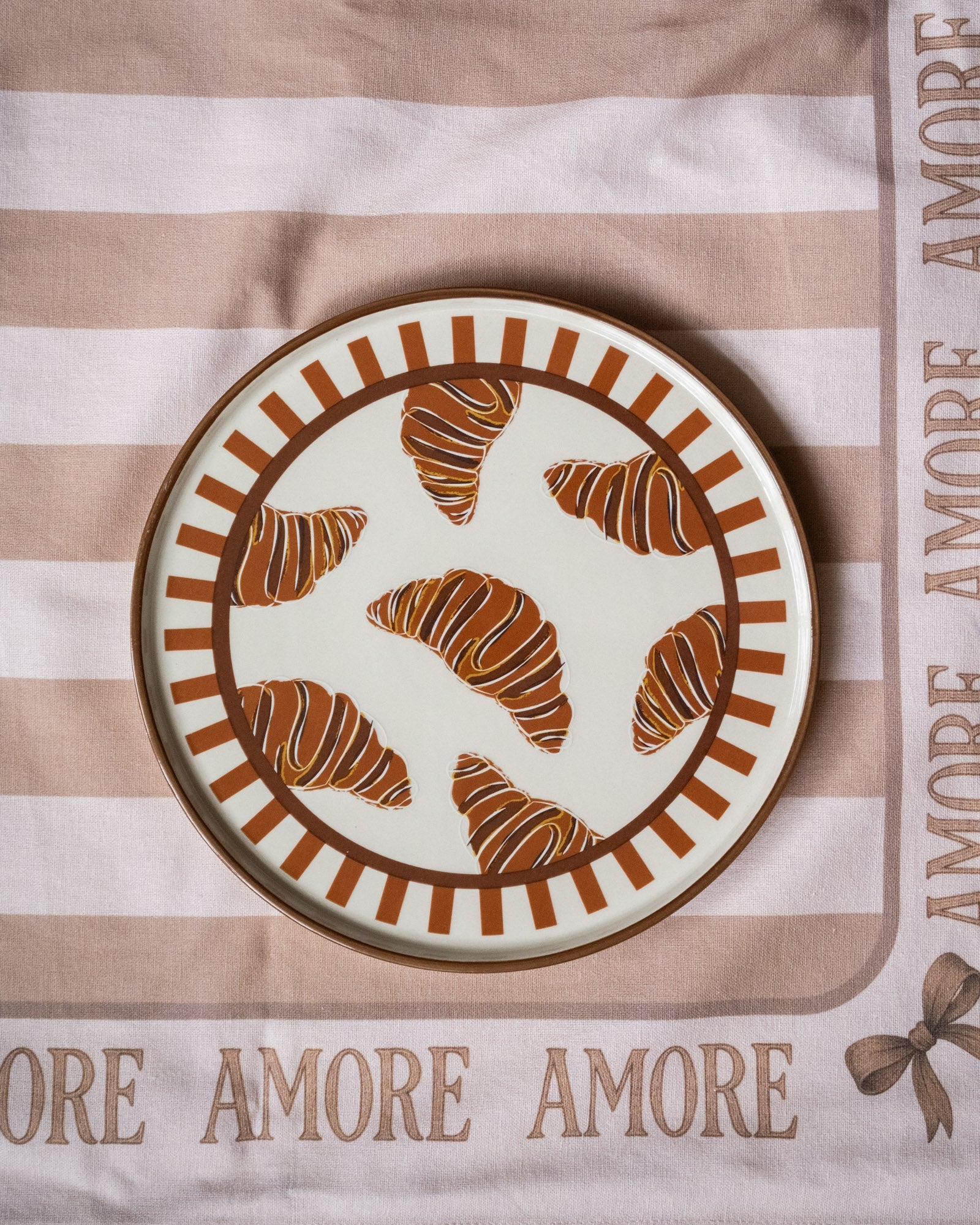 Beginnen Sie Ihren Tag mit einem Lächeln – mit dem Croissant-Teller. Dieser verspielte Teller mit Croissant-Motiv verleiht Ihrem Frühstück oder Ihrer Kaffeepause im Handumdrehen einen Hauch französischen Charmes. Perfekt für Croissants, Gebäck oder einfach als fröhlicher Blickfang in Ihrer Küche. Kombinieren Sie ihn mit anderen Motiven für eine gemütliche Bistro-Atmosphäre. 🥐