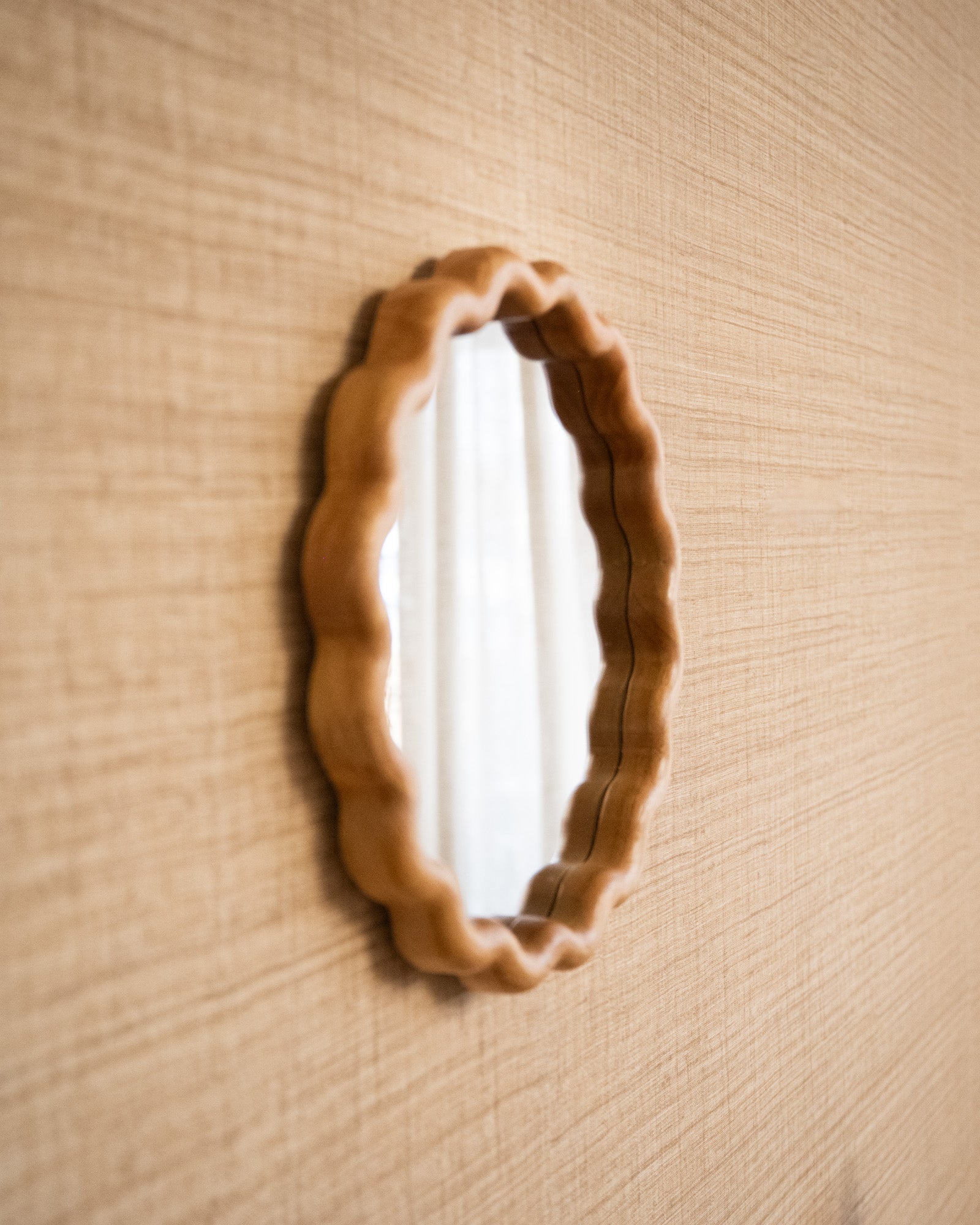 Der Wellenspiegel Onda Wood ist ein stilvoller Wandspiegel aus Gummibaumholz mit einer verspielten, geschwungenen Form. Das natürliche Holz und das sanfte Design machen diesen Spiegel zur perfekten Ergänzung für japanische, moderne oder warm-minimalistische Interieurs. Ein echter Blickfang, der jedem Raum Licht und Charakter verleiht.