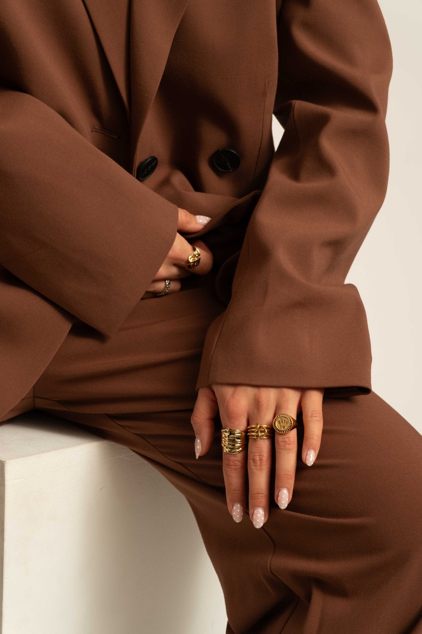 Gouden ring met een krachtig silhouet en verfijnde details. Een echte eyecatcher voor elke dag.