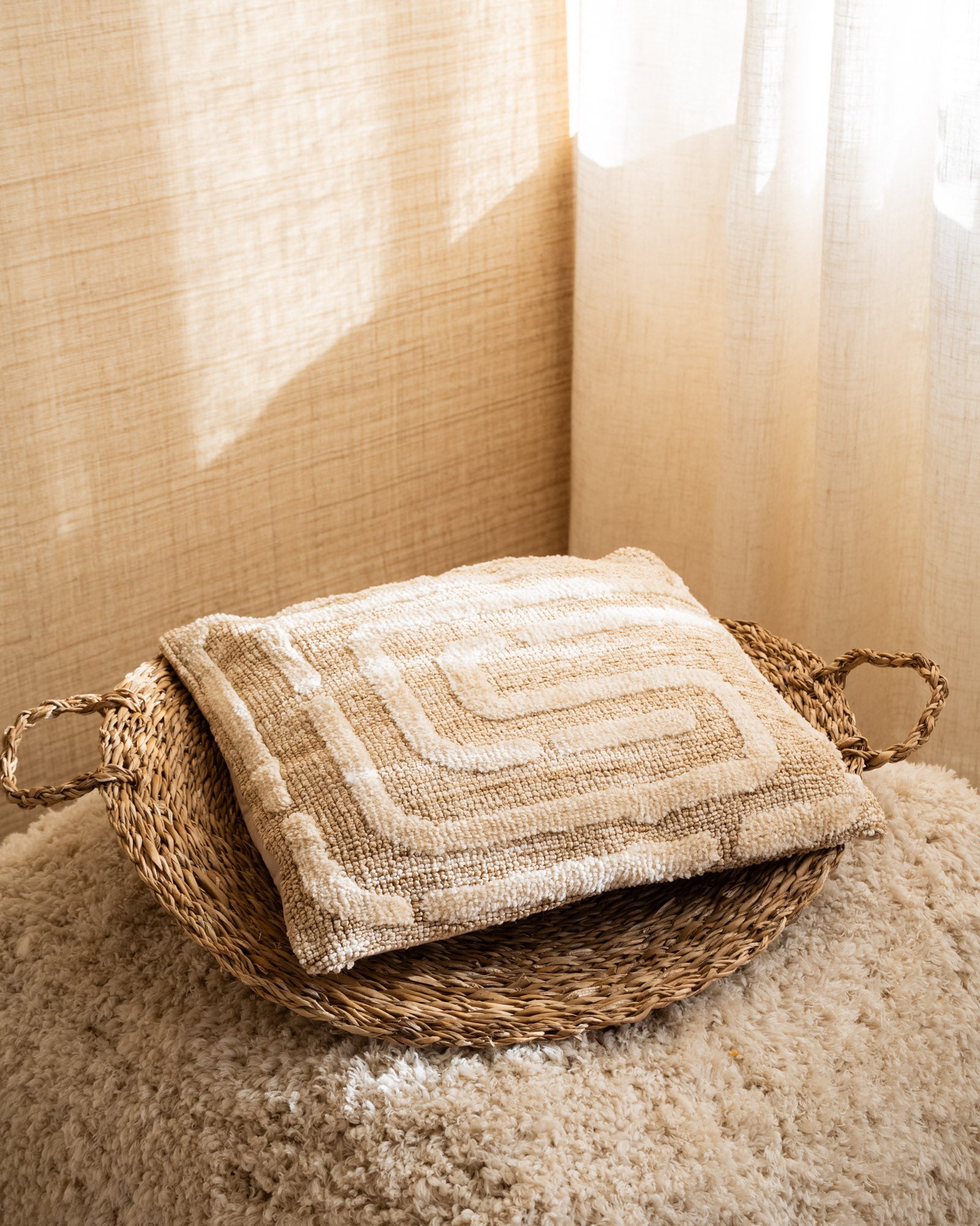 Das Kissen Benoni vereint eine natürliche Farbpalette mit einem verspielten Muster aus hoch- und niedrigflorigen Texturen. Es verleiht Ihrem Sofa oder Sessel Wärme und Charakter. Platzieren Sie es einzeln oder kombinieren Sie es mit anderen Kissen für einen lässigen und dennoch stilvollen Look. Mit seinen natürlichen Farbtönen fügt sich dieser Artikel wunderbar in ein Japandi-Interieur ein.