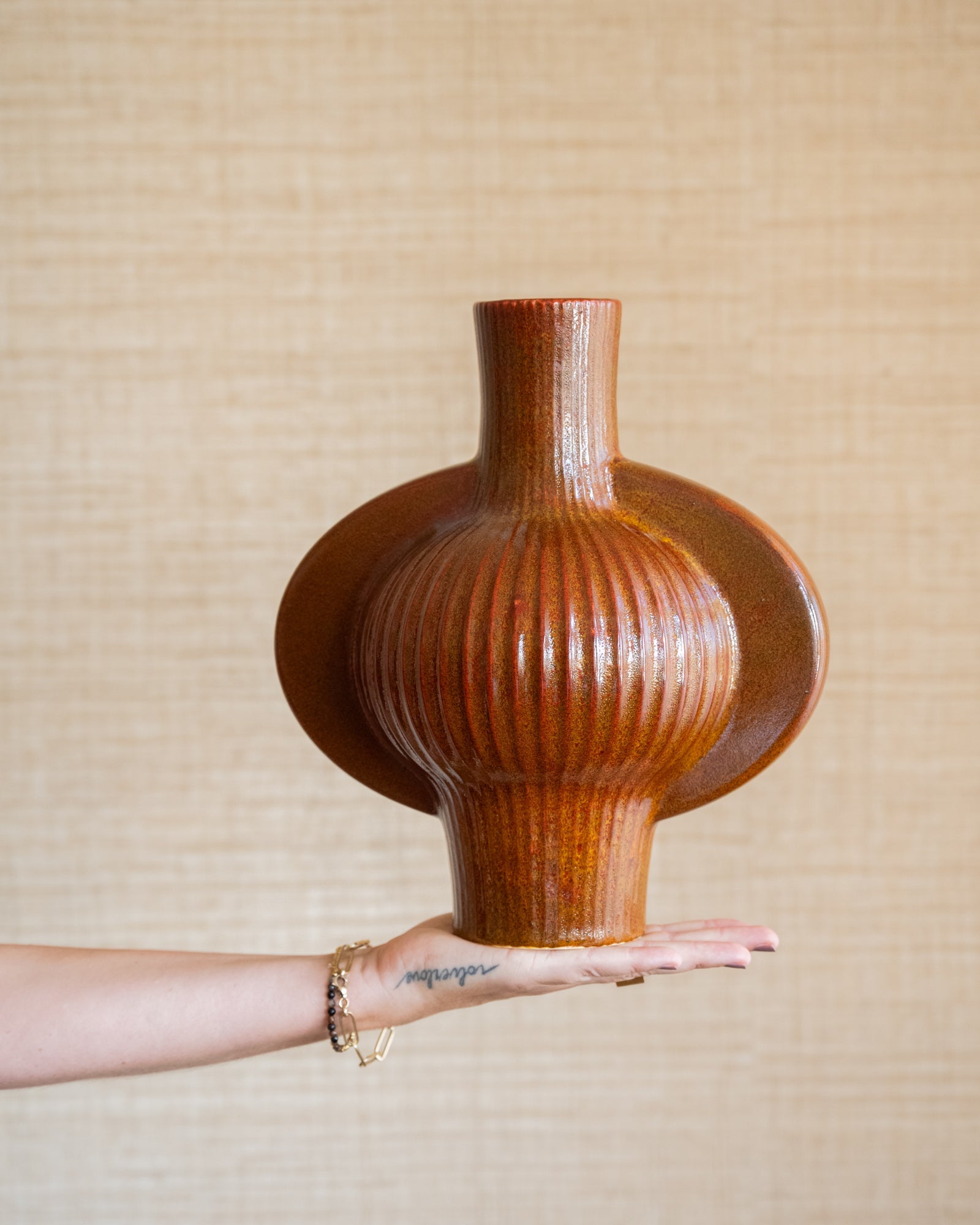 Diese Vasen verleihen Ihrer Inneneinrichtung eine ausgefallene Atmosphäre! Mit ihrer einzigartigen Form und den warmen Farben heben sie Ihren Raum auf eine neue Ebene der Kreativität. Perfekt für einen verspielten, gewagten Look, der auf jeden fall auffällt!