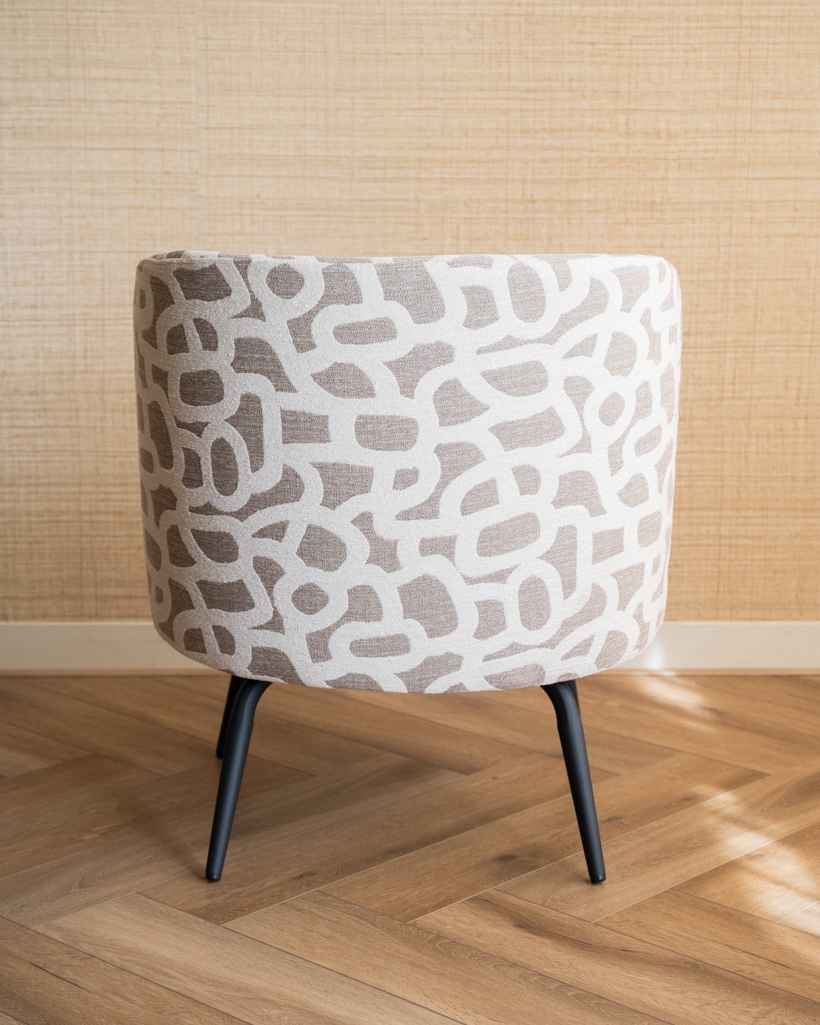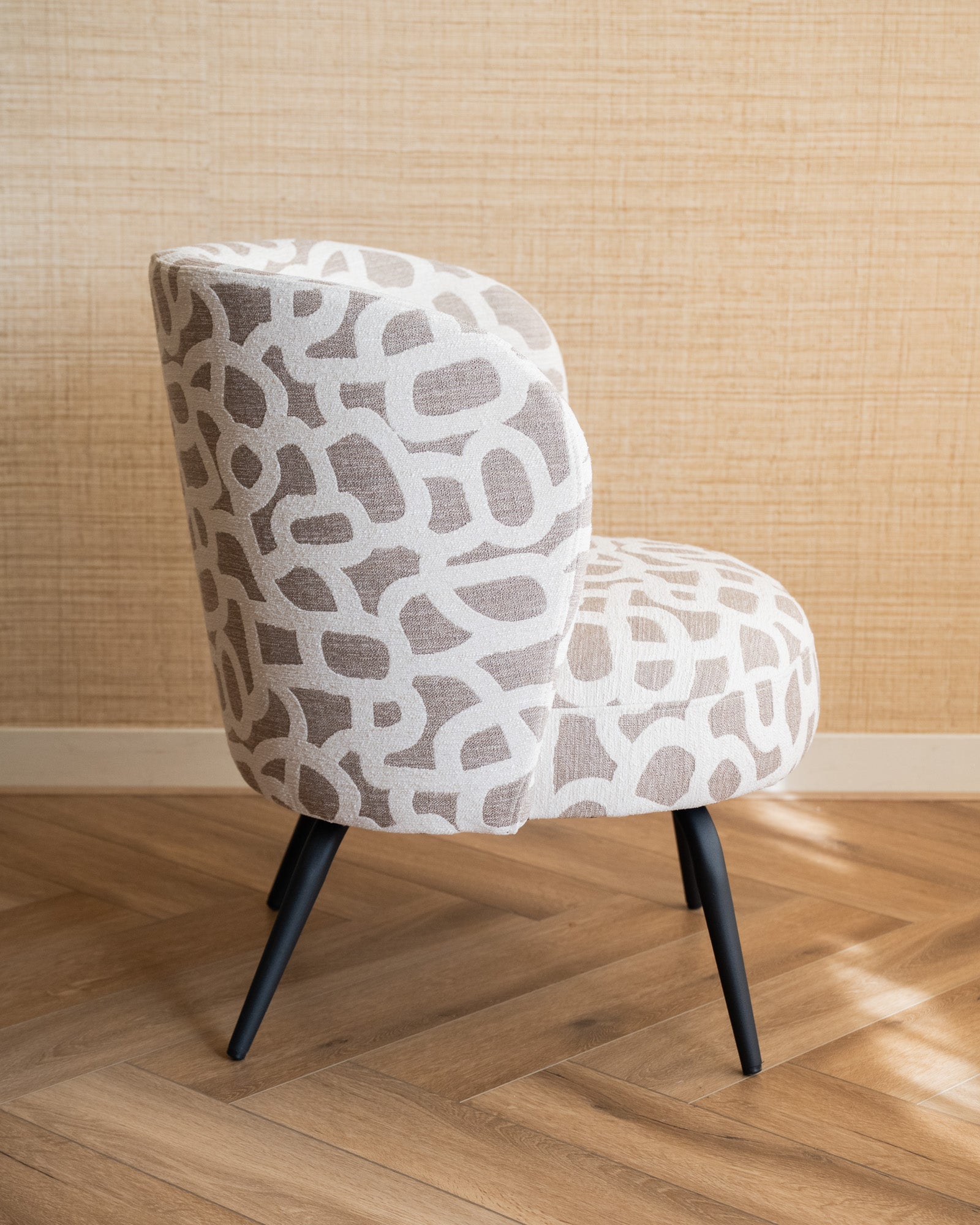 Verleihen Sie Ihrem Zuhause mit diesem bedruckten Sessel eine verspielte und moderne Note. Der weiche Bezug sorgt für zusätzlichen Komfort, während die eleganten schwarzen Beine einen stilvollen Kontrast bilden. Perfekt als Blickfang im Wohnzimmer, Schlafzimmer oder in der Leseecke.