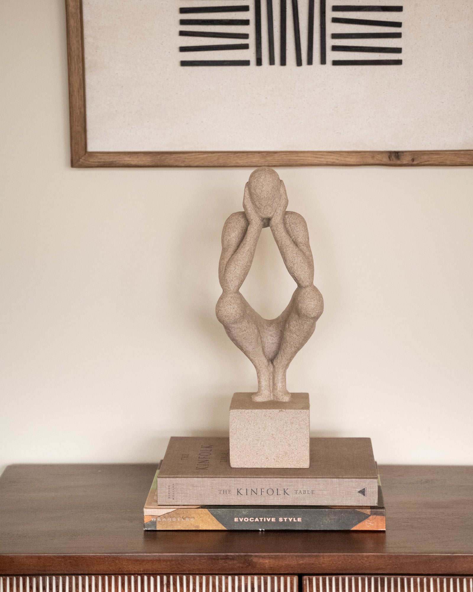 Die Livno-Figur bringt minimalistische Kunst in Ihr Zuhause. Ihre schlichten Linien und die natürliche Ausstrahlung machen sie zu einem ausdrucksstarken und zugleich dezenten Blickfang. Perfekt, um auf Ihrem Schrank, Regal oder Tisch eine ruhige und stilvolle Atmosphäre zu schaffen. Ein Must-have für alle Liebhaber moderner Schlichtheit! Der natürliche Look harmoniert perfekt mit der ruhigen Atmosphäre eines Japandi-Interieurs.
